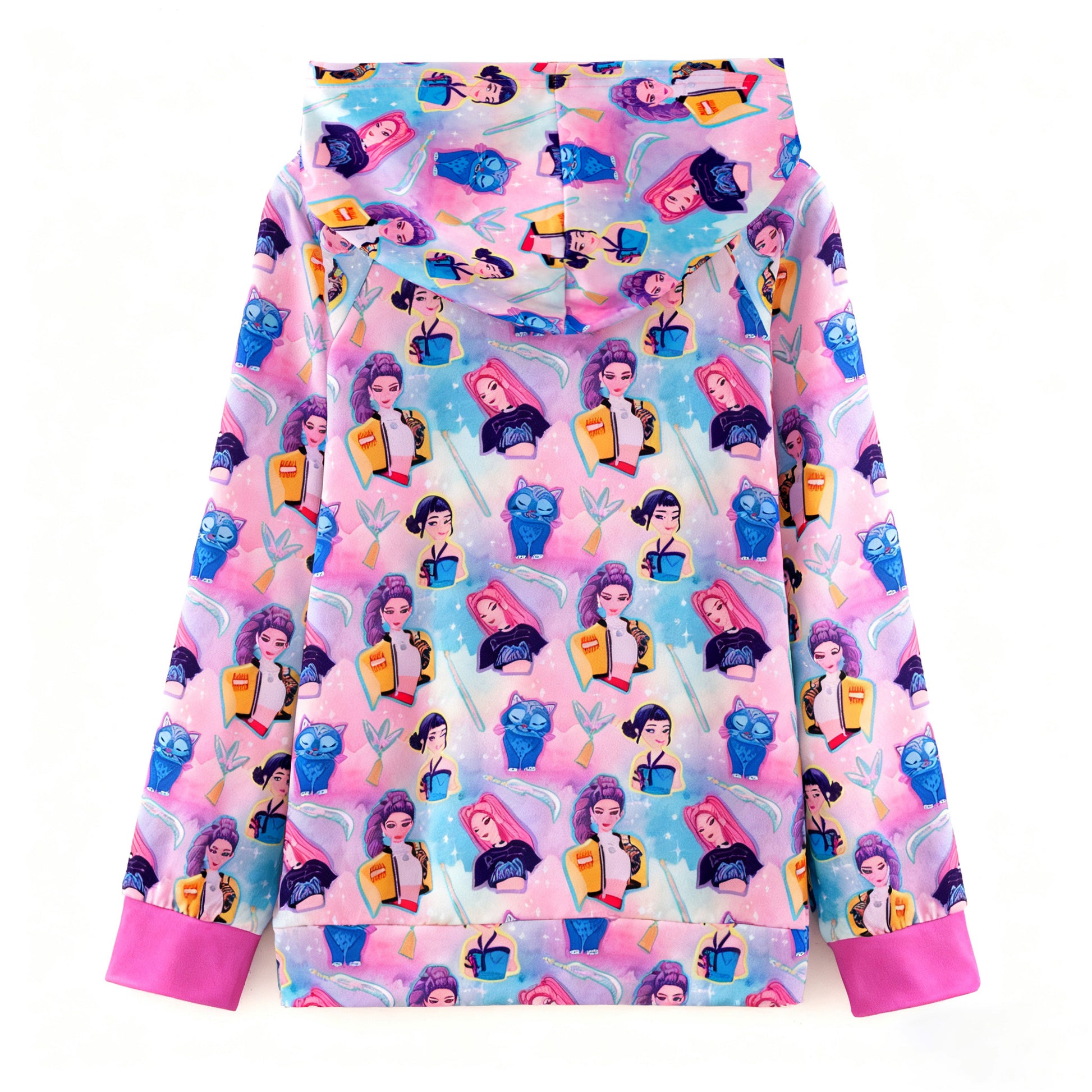 Level up your hoodie game with this fierce K-pop demon hunter design that screams personality. Featuring a bold printed graphic and practical front pockets, it's the perfect layering piece for fall adventures. Whether you're a devoted fan or just love mixing pop culture with edgy style, this hoodie delivers comfort without compromising on cool. Soft, wearable, and totally Instagram-worthy—your new go-to for looking effortlessly awesome.
