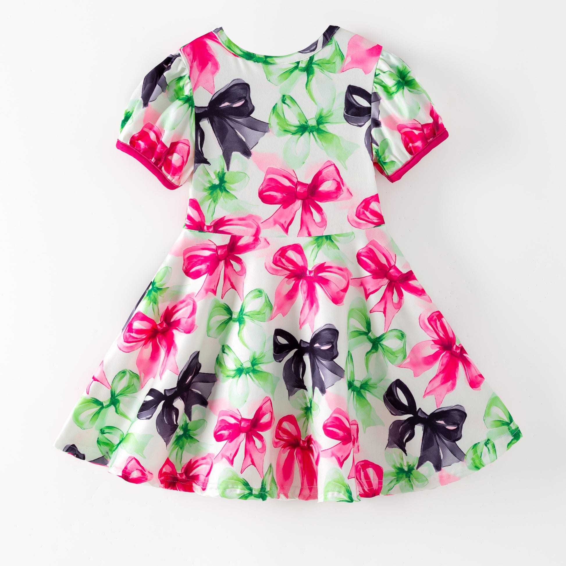 2026 Spring St.Patrick's Day Bow Short Sleeves Twirl Dress