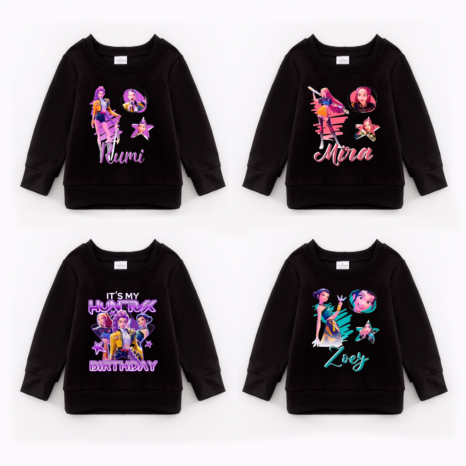 Go dark and daring with this black cotton sweatshirt featuring an epic K-pop Demon Hunter print that screams cool. Perfect for spring layering or standalone wear, it's the ultimate flex for anime enthusiasts and K-pop devotees alike. The striking graphic pops against the classic black base, giving you that mysterious-yet-fun vibe. Soft, versatile, and ready to become your new favorite go-to piece.