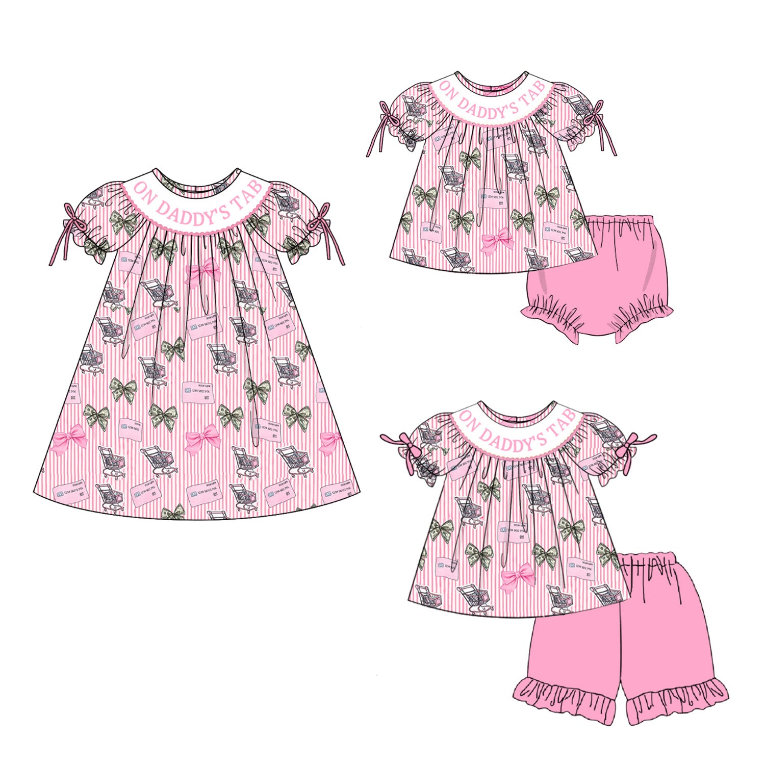 ON DADDY'S TAB Summer Pink Bow Smocked Embroidery Collection
