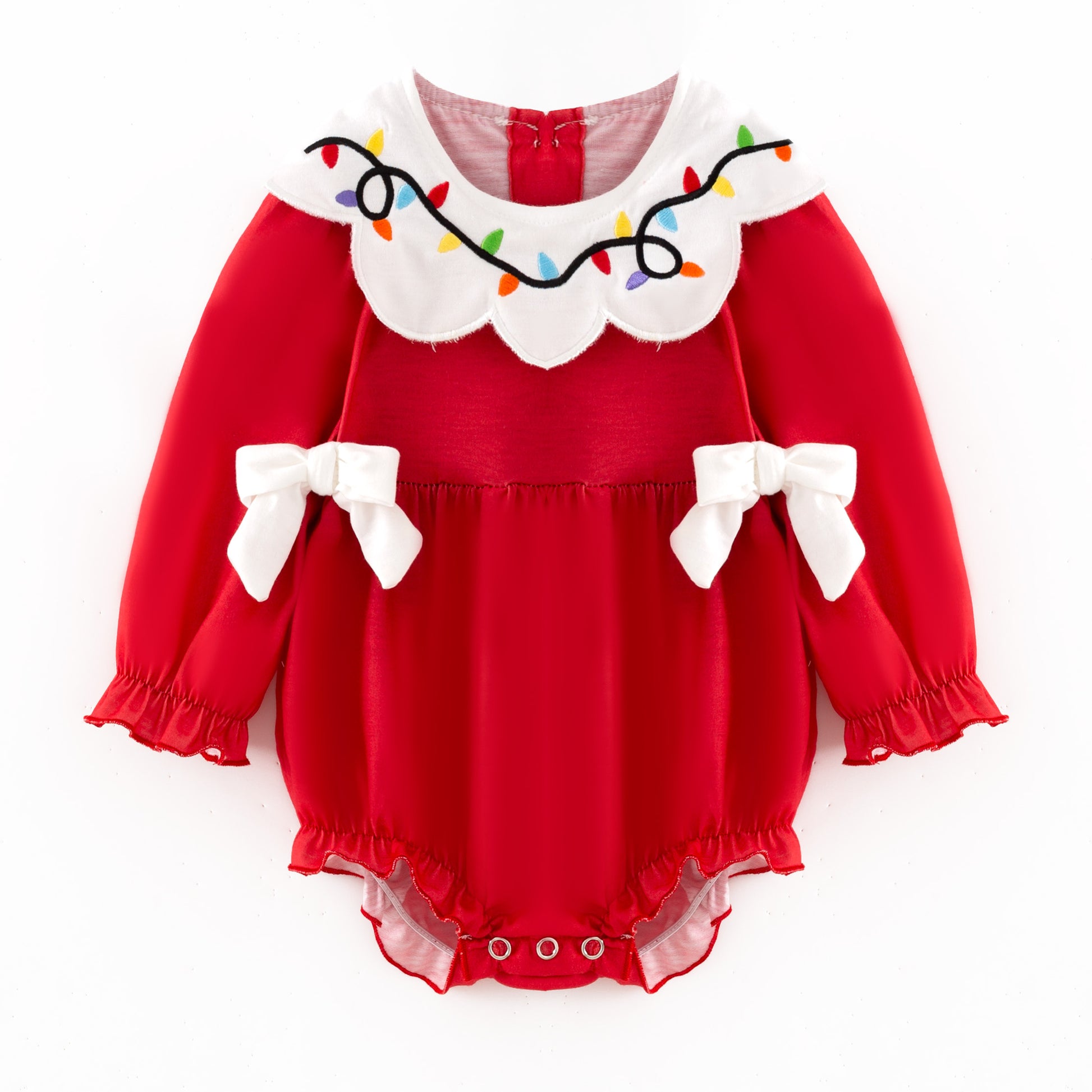 Celebrate the season in style with this playful Christmas Lights Embroidered Sibling Set! Featuring a charming holiday dress paired with a coordinating bubble outfit, this set brings festive cheer to your little ones' wardrobe. The delicate embroidered lights add a whimsical touch, making holiday photos even more memorable. Perfect for siblings who love to match and spread smiles during the holidays.