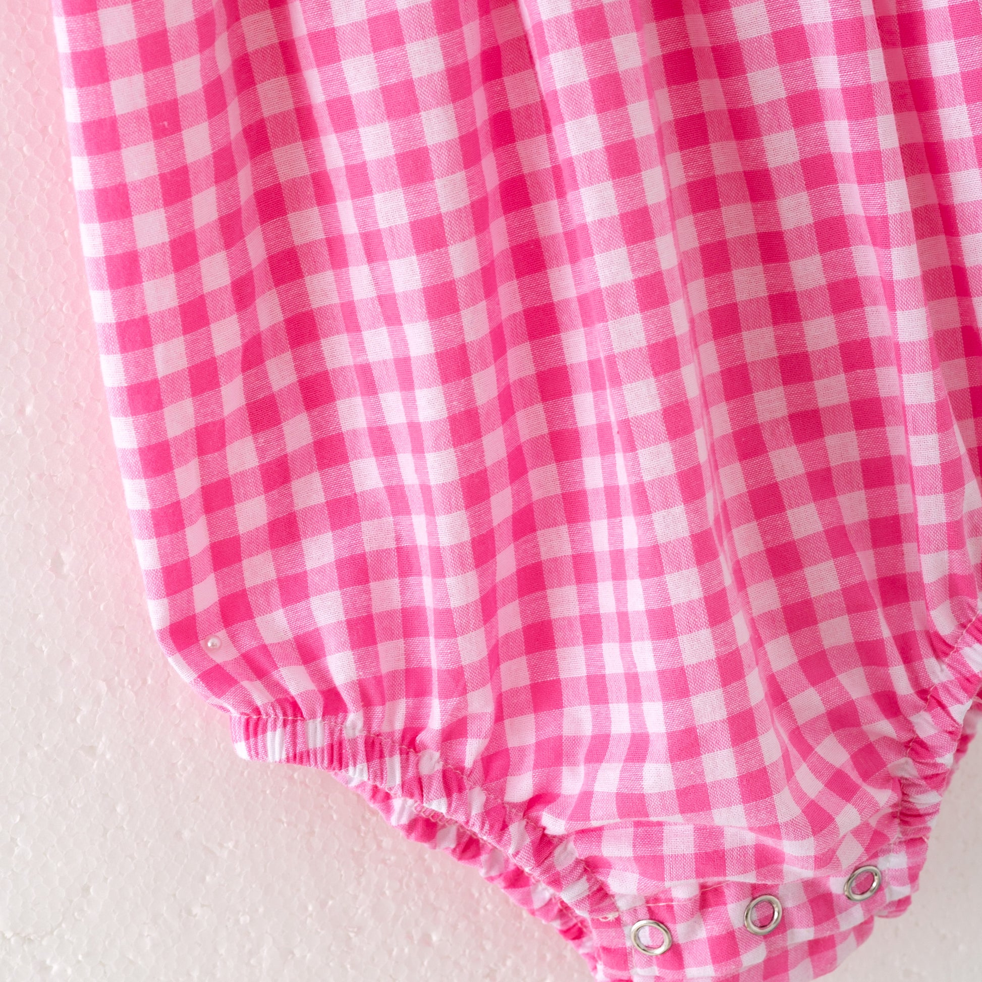 Dress your little one in festive charm with our Baby Girls Halloween Pink Plaid Smocked Bubbles! These adorable rompers feature delicate embroidery and classic smocking on a cheerful pink plaid pattern. Perfect for Halloween parties or autumn photoshoots, these bubbles combine comfort with cuteness, keeping your baby girl cozy while looking absolutely precious. The easy snap closures make diaper changes a breeze!