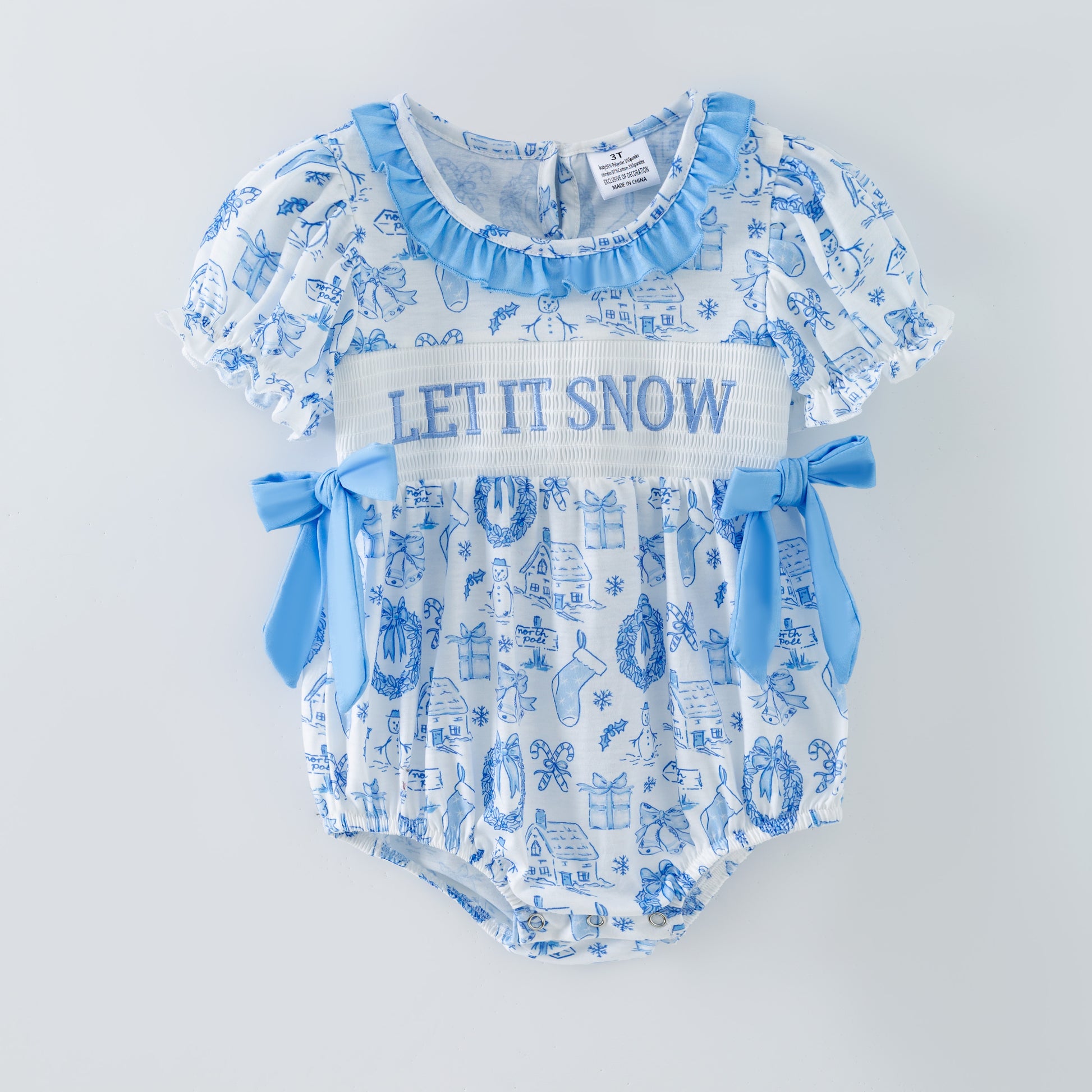 Baby Girls LET IT SNOW Smocks Embroidery Romper