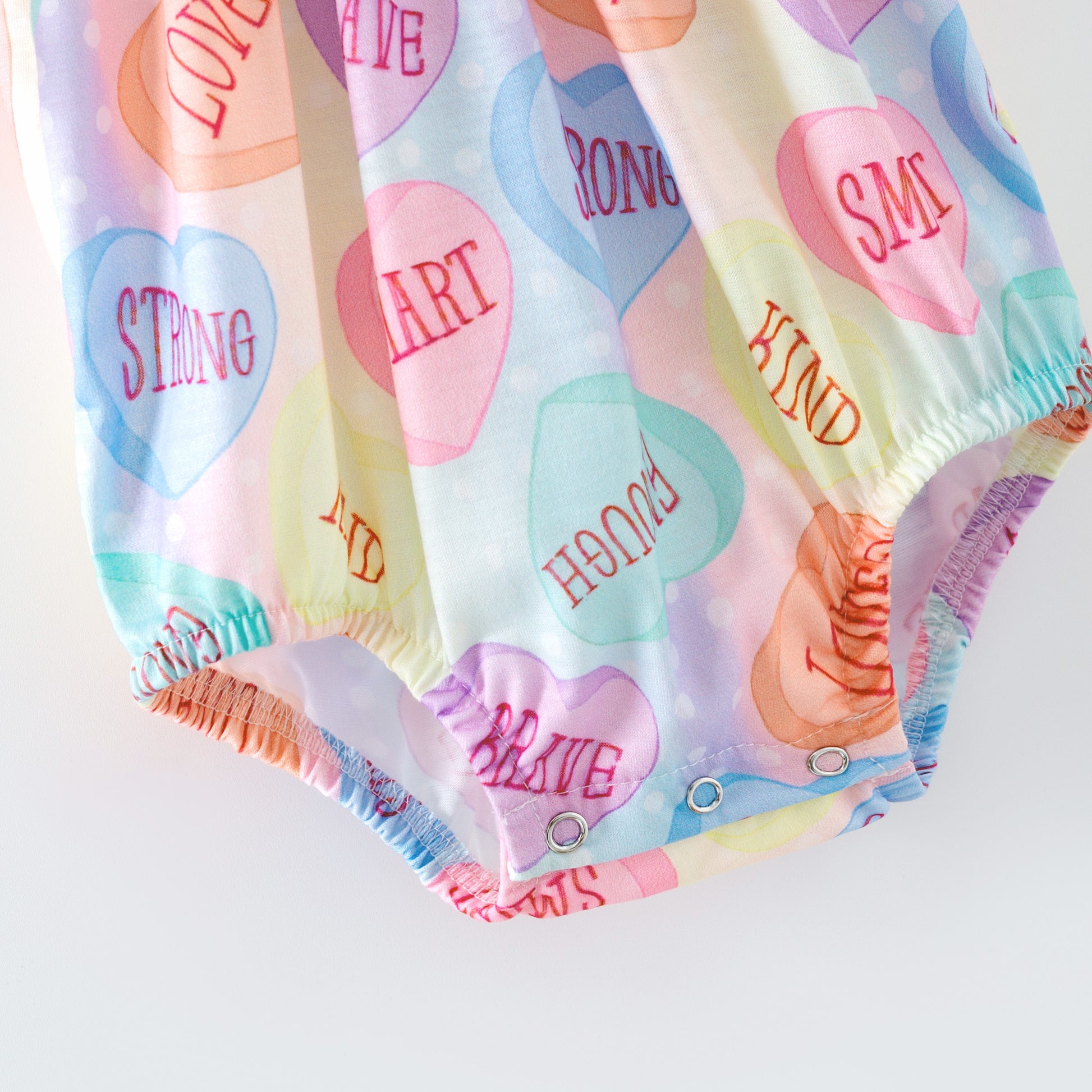 Adorable Valentine's Day romper featuring charming heart and XOXO embroidery details. This smock-style piece combines comfort with festive flair, perfect for celebrating love in style. The relaxed fit allows easy movement for active little ones, while the embroidered accents add a sweet, whimsical touch. Ideal for holiday photos, playdates, or spreading Valentine's cheer. Soft, durable fabric keeps your child cozy all day long.