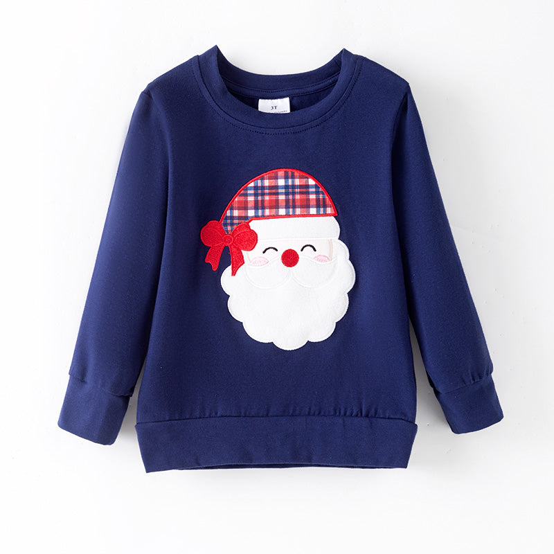 Boys Christmas Sweatshirt – Santa Claus Embroidery Pullover Top