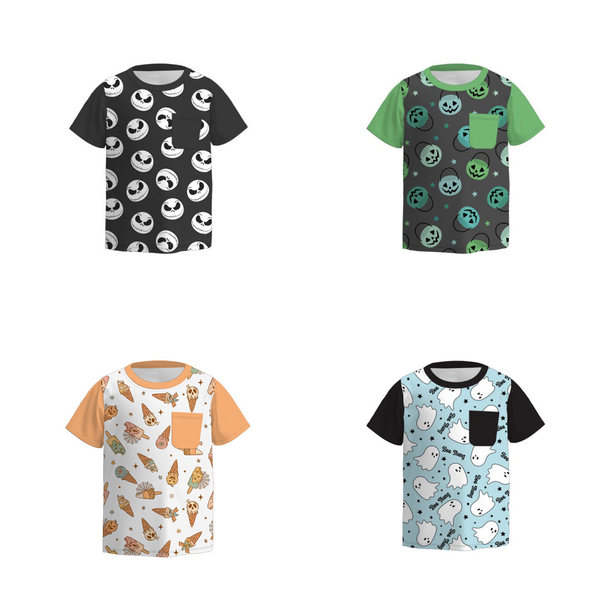Get your little one ready for spooky fun with this Boys Fall Halloween Skull Ghost Pocket Short Sleeves Top. Featuring playful skull and ghost designs, it’s perfect for autumn adventures and Halloween celebrations. The handy pocket adds a cool touch while keeping small treasures close. Comfortable and festive, this top makes fall even more fun!