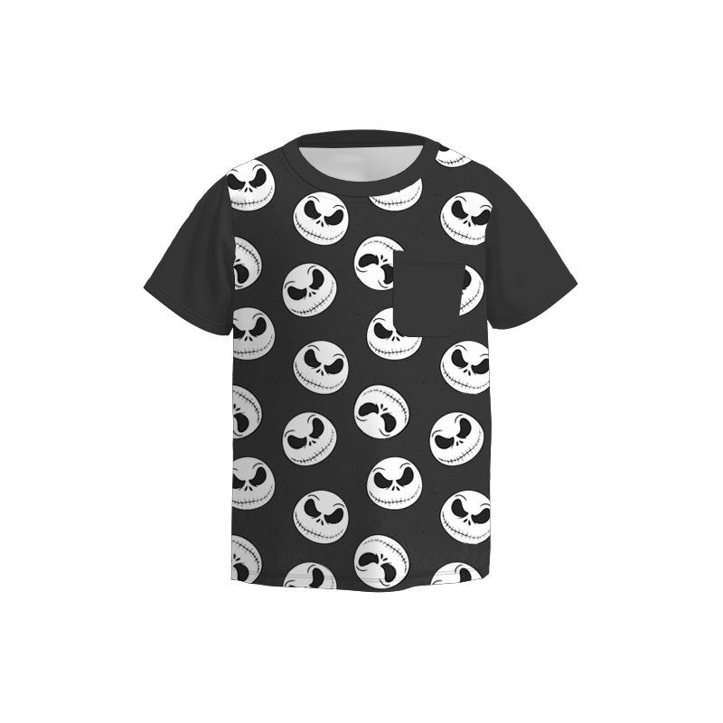 Boys Fall Halloween Skull Ghost Pocket Short Sleeves Top