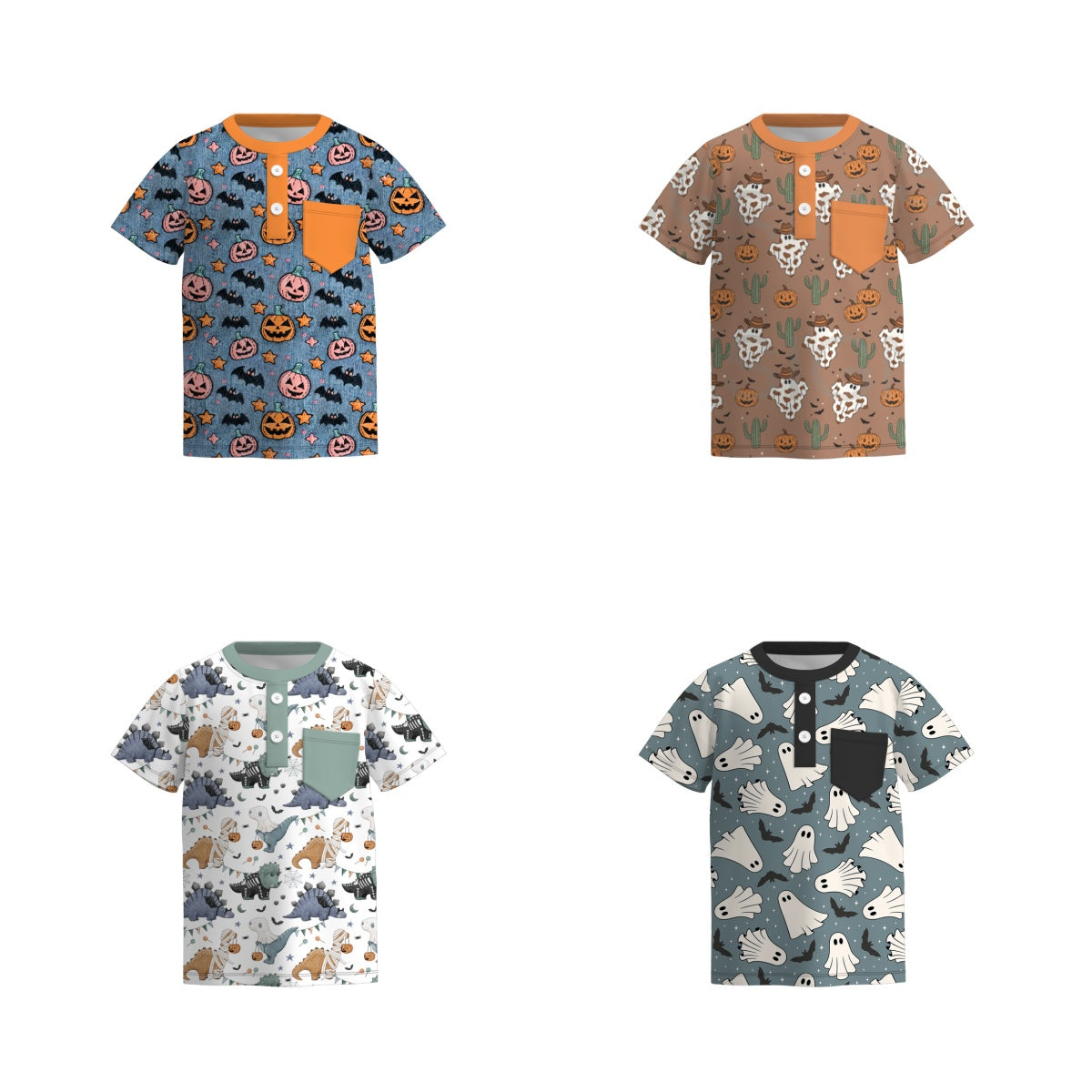 Boys Halloween Fall Pumpkin Ghost Dinosour Pocket Polo Shirt
