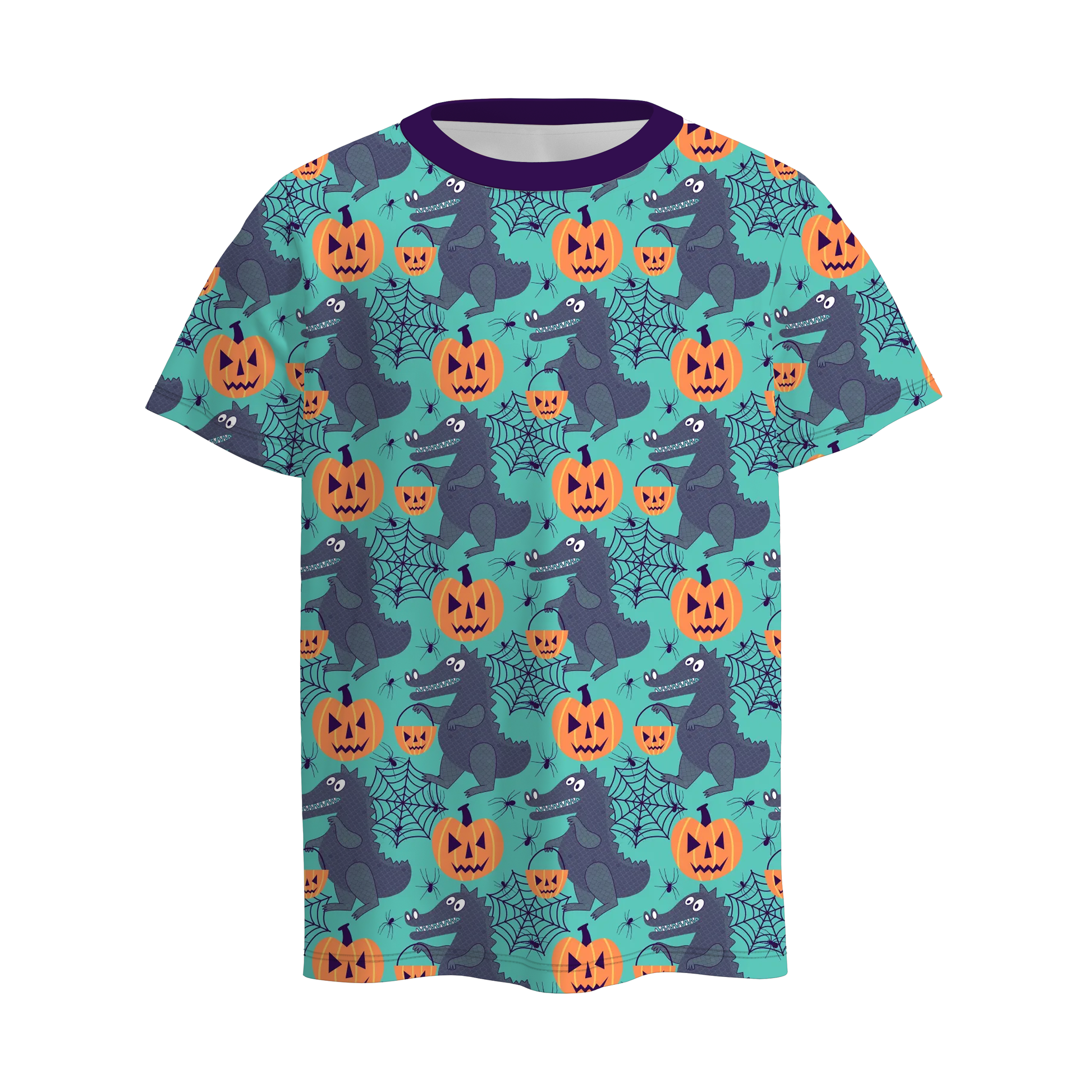 Boys Halloween Fall Pumpkin Face Ghost Dinosour Short Sleeve Crewneck T-Shirt