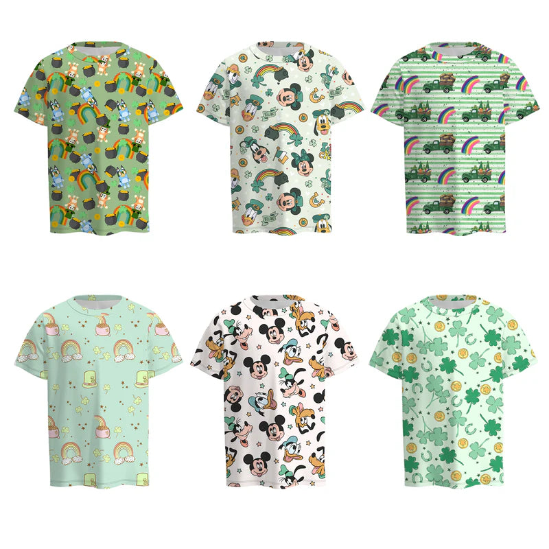 Celebrate St. Patrick's Day in style with this adorable boys' short-sleeve top featuring charming cartoon graphics. Perfect for holiday festivities, school events, or casual wear, this tee brings festive cheer with a fun, kid-friendly design. Made for comfort and durability, it's an easy addition to any young boy's wardrobe. Whether he's marching in a parade or just spreading the luck of the Irish, this playful top makes the perfect seasonal choice!