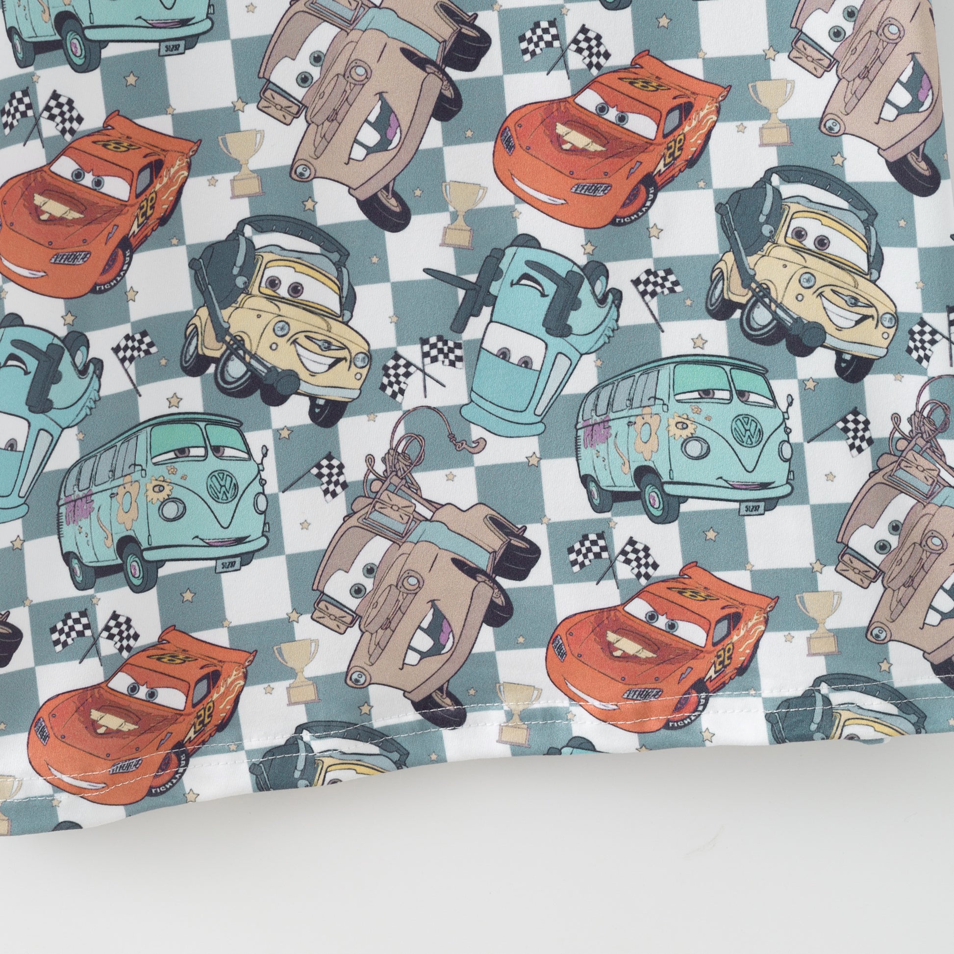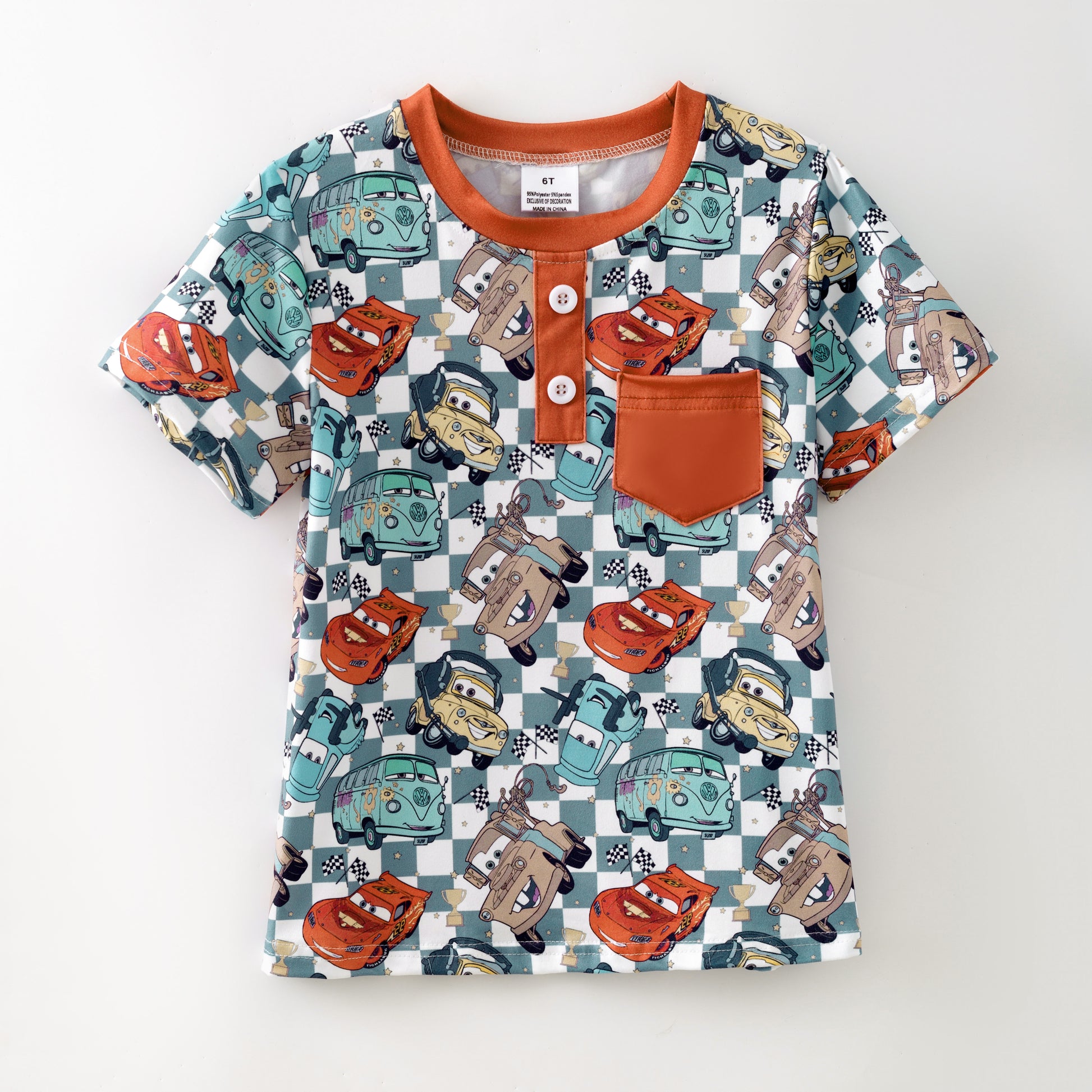 Boys Fall Autumn Orange Car Plaid Print Pocket T-Shirt