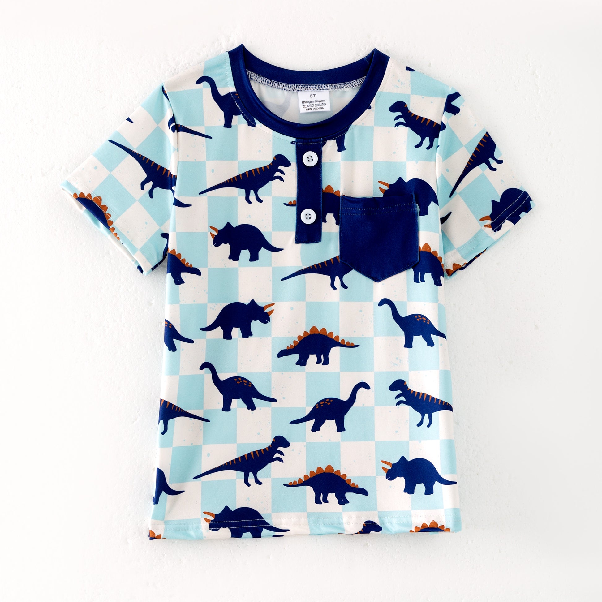 Boys Summer Pocket Dinosour Print T-Shirt