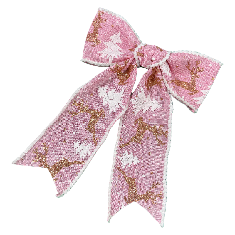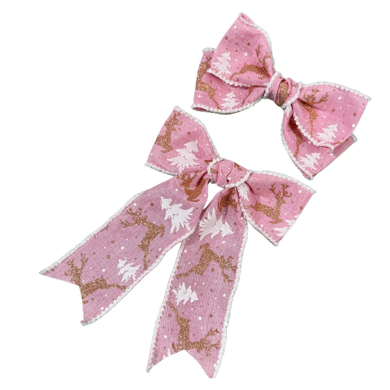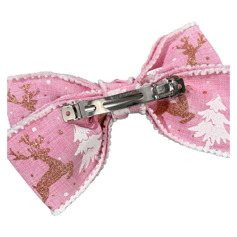 Christmas Gold Reindeer & Christmas Tree Bow Hair Clip – Festive Holiday Party Sweet Hair Accessory