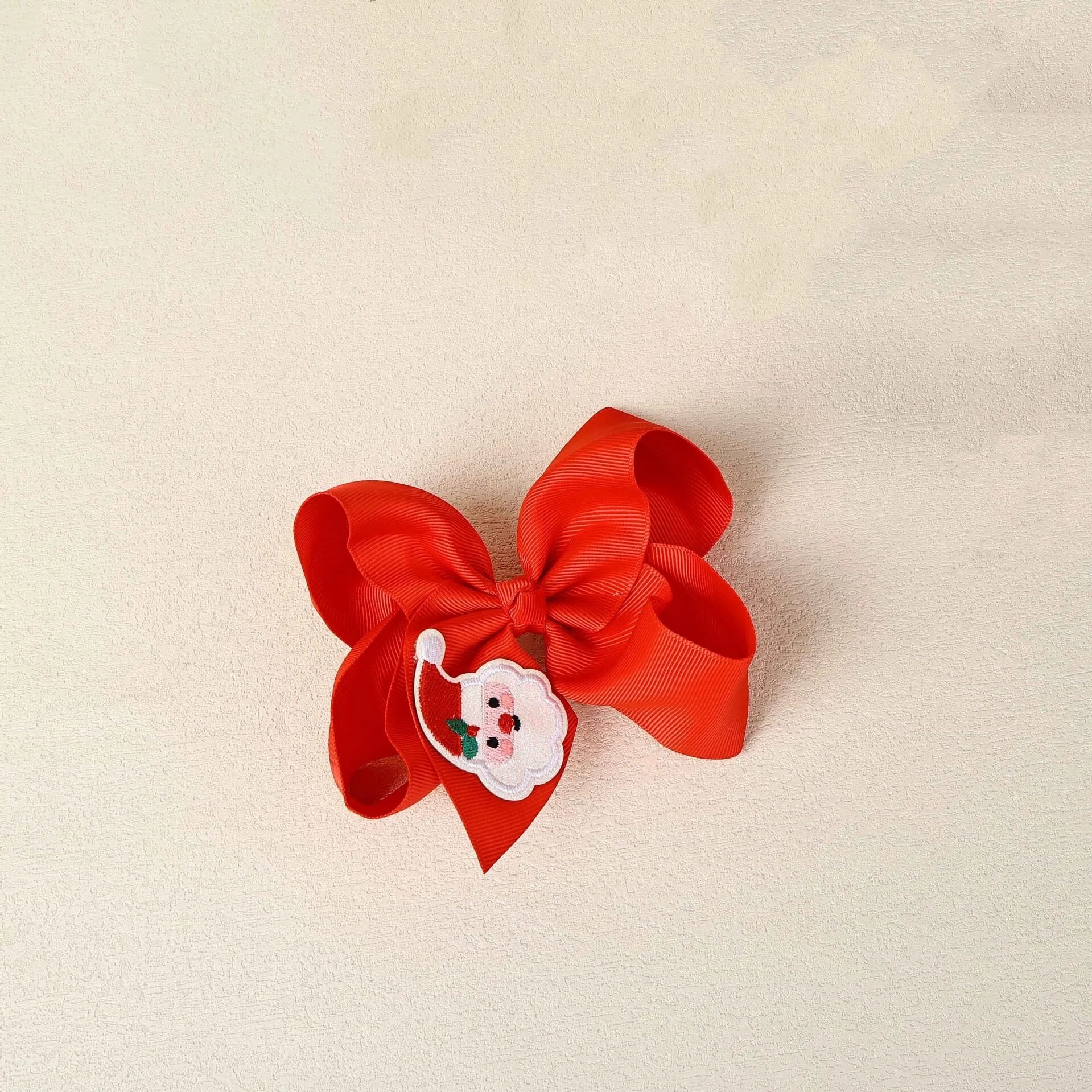 2025 Christmas Embroidered Hair Bows Santa Claus Snowman Christmas Tree Holiday Hair Clips for Girls