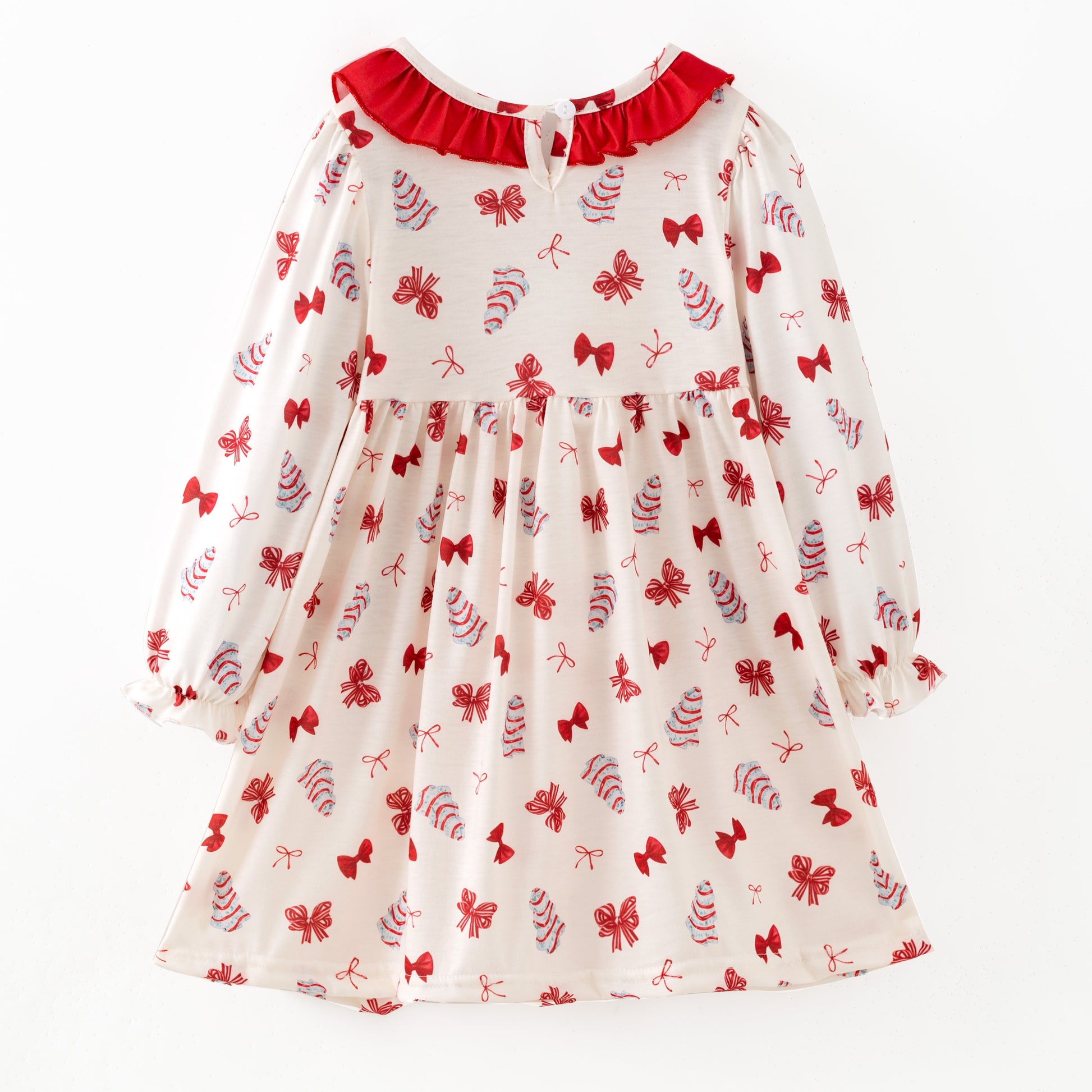 Christmas Tis The Season Sister Embroidered Red Bow Dress&Romper