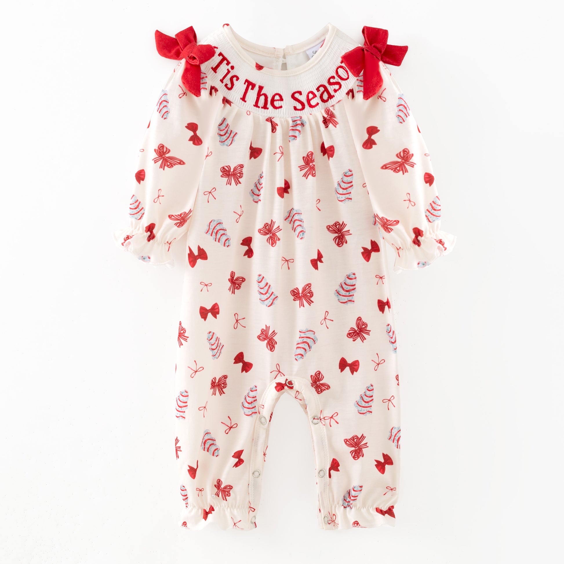 Celebrate the holidays in style with this festive red dress and romper set, featuring charming embroidered "Tis The Season Sister" text and a cute red bow detail. Perfect for sisters to twinkle together at any Christmas gathering, this outfit combines comfort and holiday cheer for a playful, memorable look.