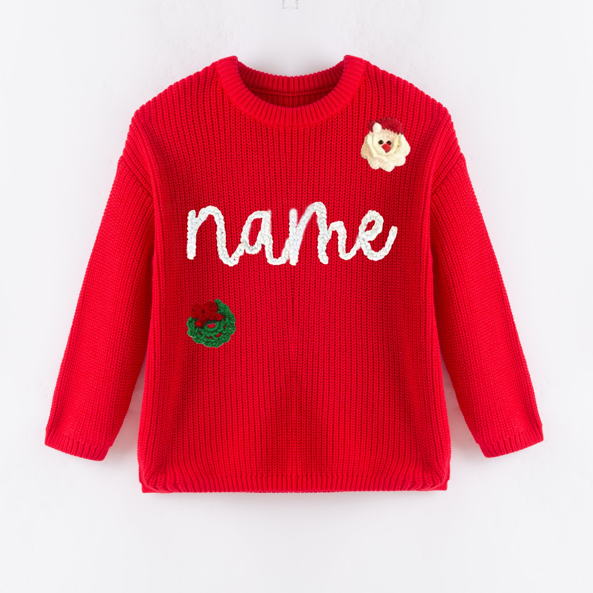 Cozy Oversize Custom Name Santa Embroidered Red Sweaters – Festive for Winter