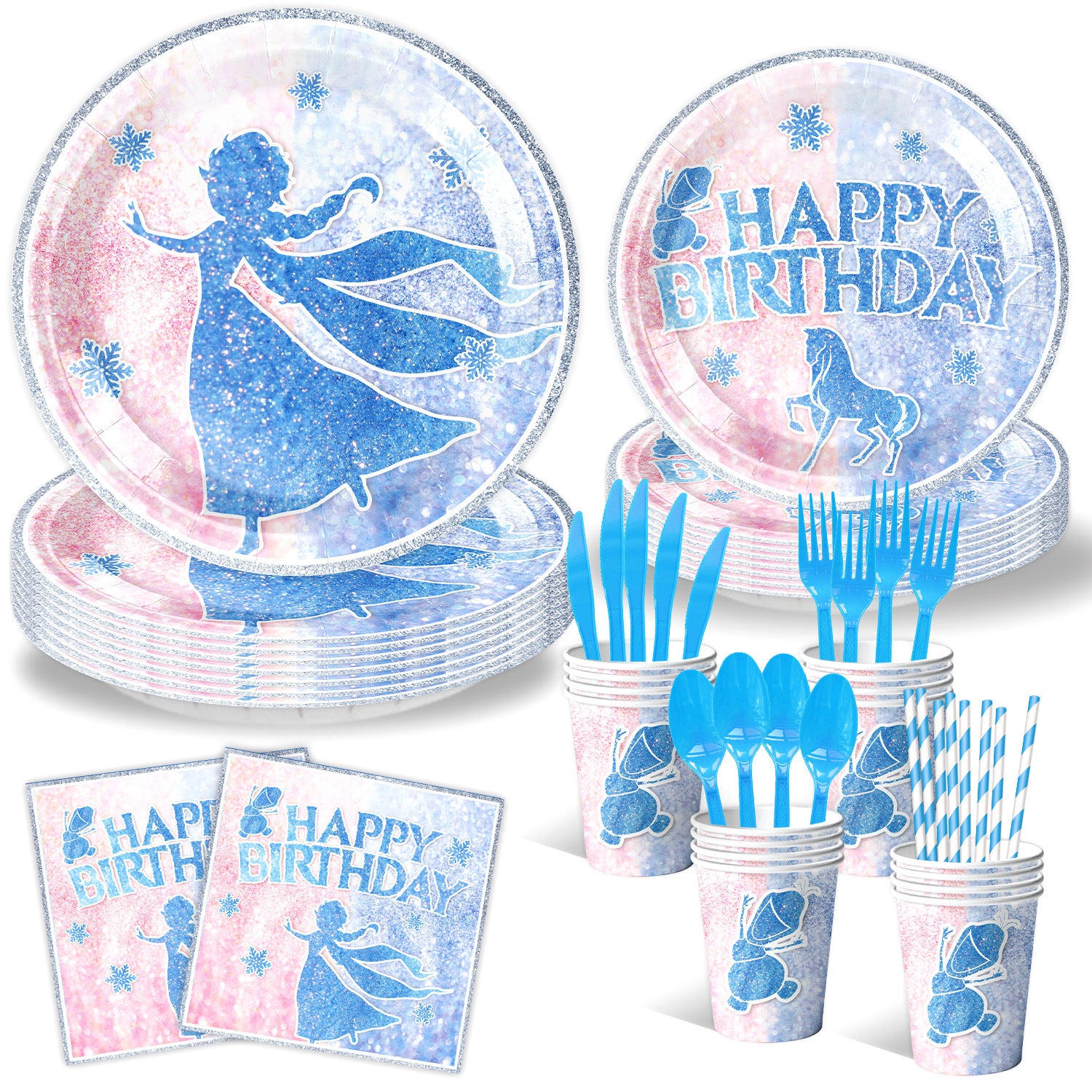 Create a magical Frozen Winter Wonderland for your little one’s birthday with these playful decorations! This set includes a dazzling snowflake balloon garland, a cheerful banner, and matching party supplies that bring the sparkle of winter indoors. Perfect for sparking joy and making your child’s special day feel like a snowy celebration full of fun and wonder.