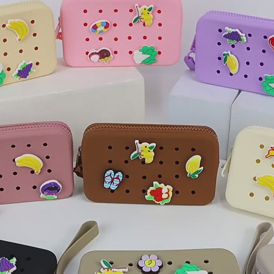 Organize in style with this versatile silicone pouch! Perfect for coins, makeup, or small essentials, it features built-in DIY charm holes so you can personalize it exactly how you want. Durable, flexible, and fun—your new go-to storage solution.