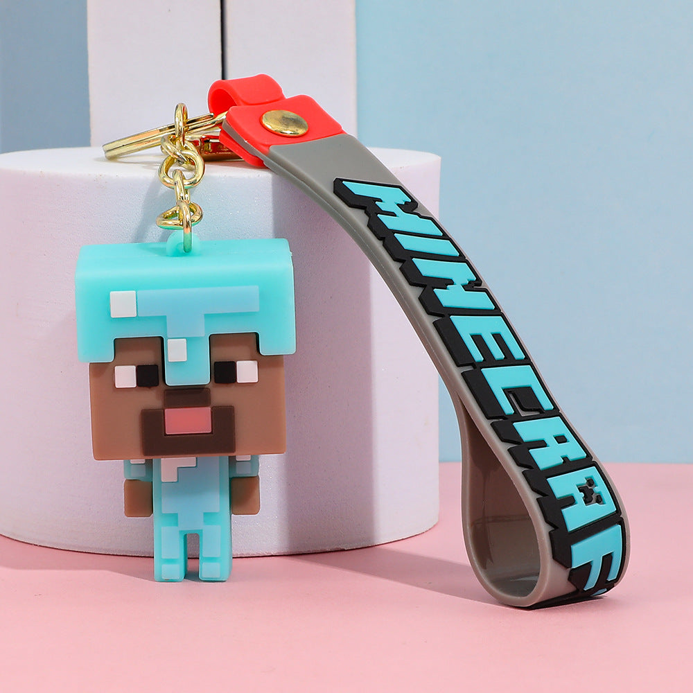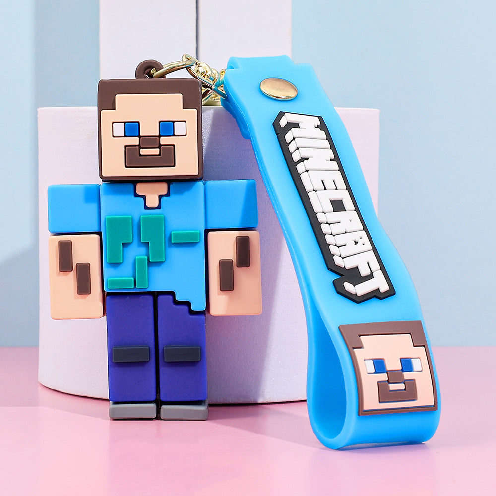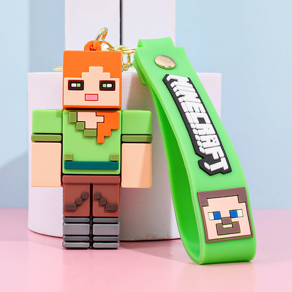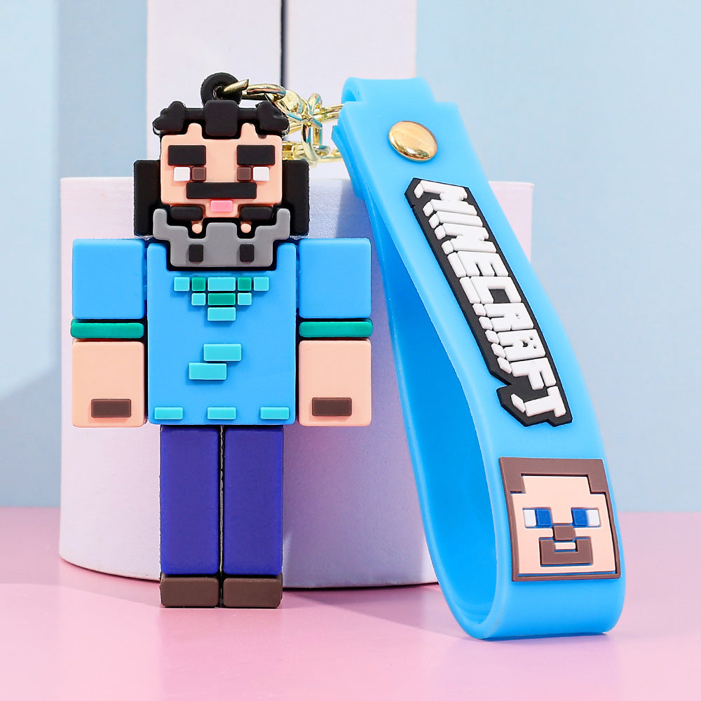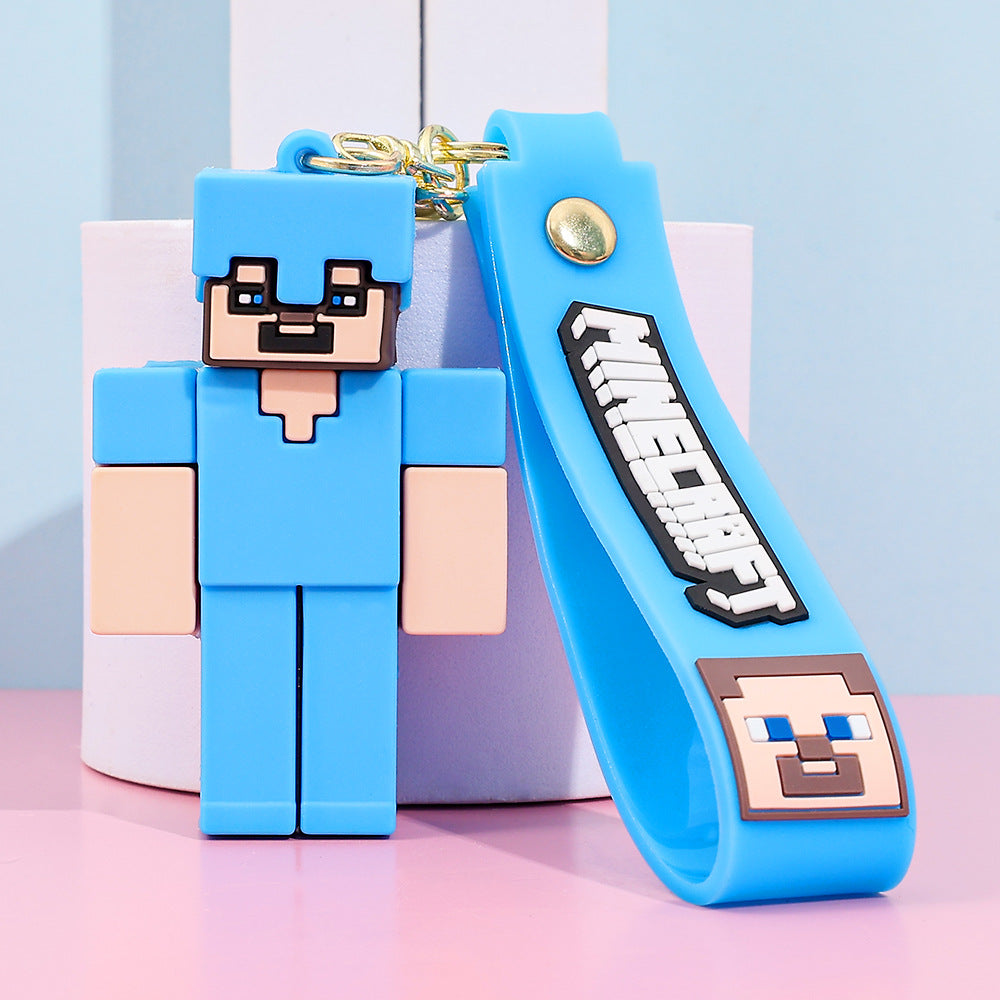 Pixel Block Style PVC Silicone Keychain Cartoon Figure Key Ring & Bag Charm