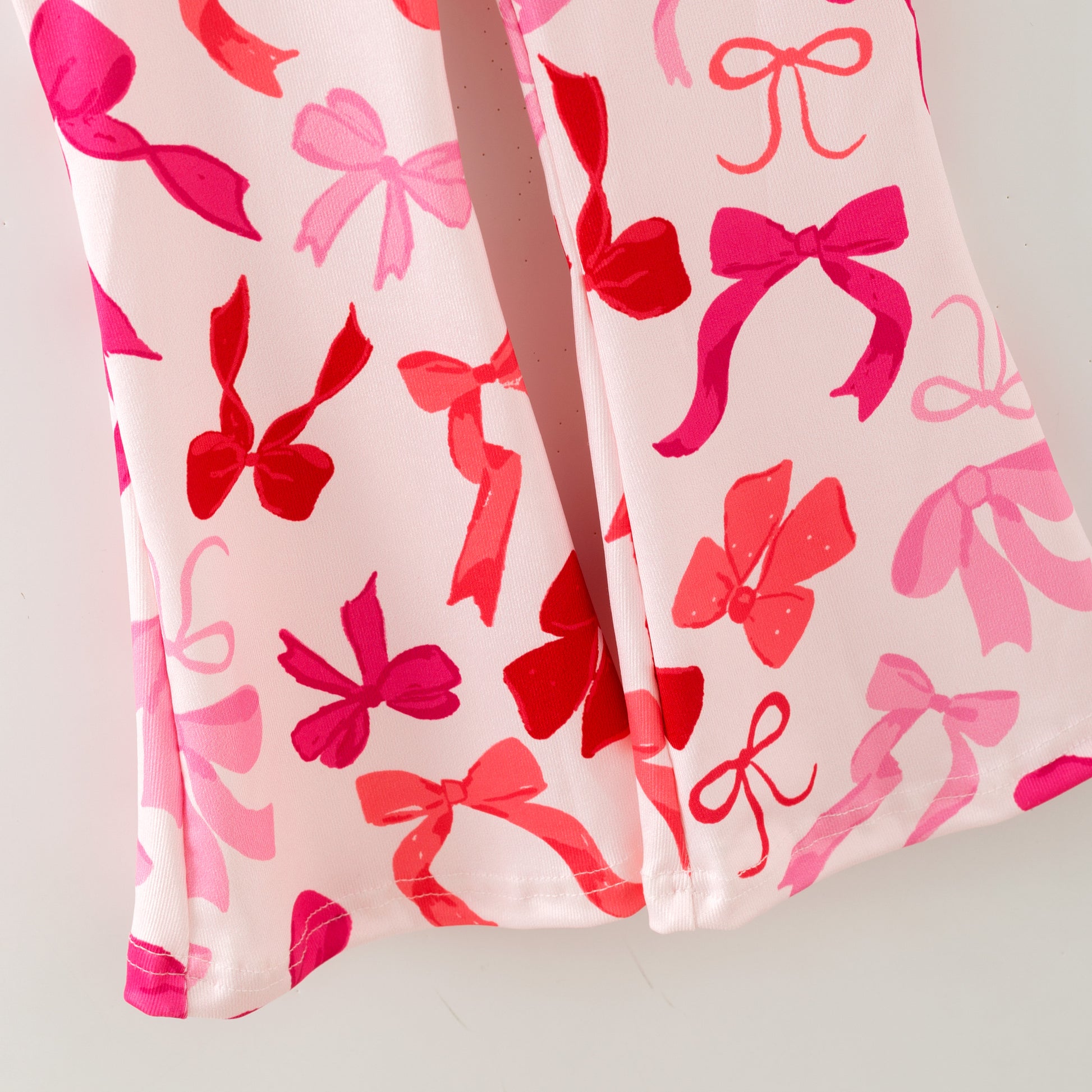 Girls Christmas Winter Pink Bow Print Sweatshirt Set