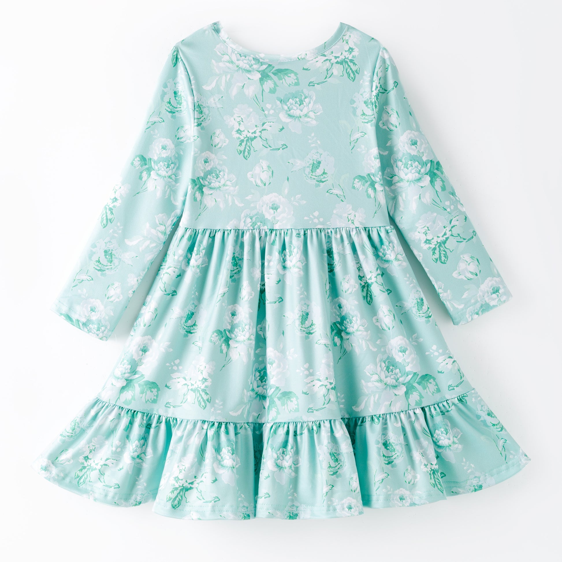 This charming blue floral dress is perfect for your little girl's autumn adventures. Featuring playful ruffled long sleeves and a vibrant floral print, it combines comfort with a touch of whimsy. Ideal for crisp fall days, this dress keeps her cozy while adding a fun, stylish flair to her wardrobe.