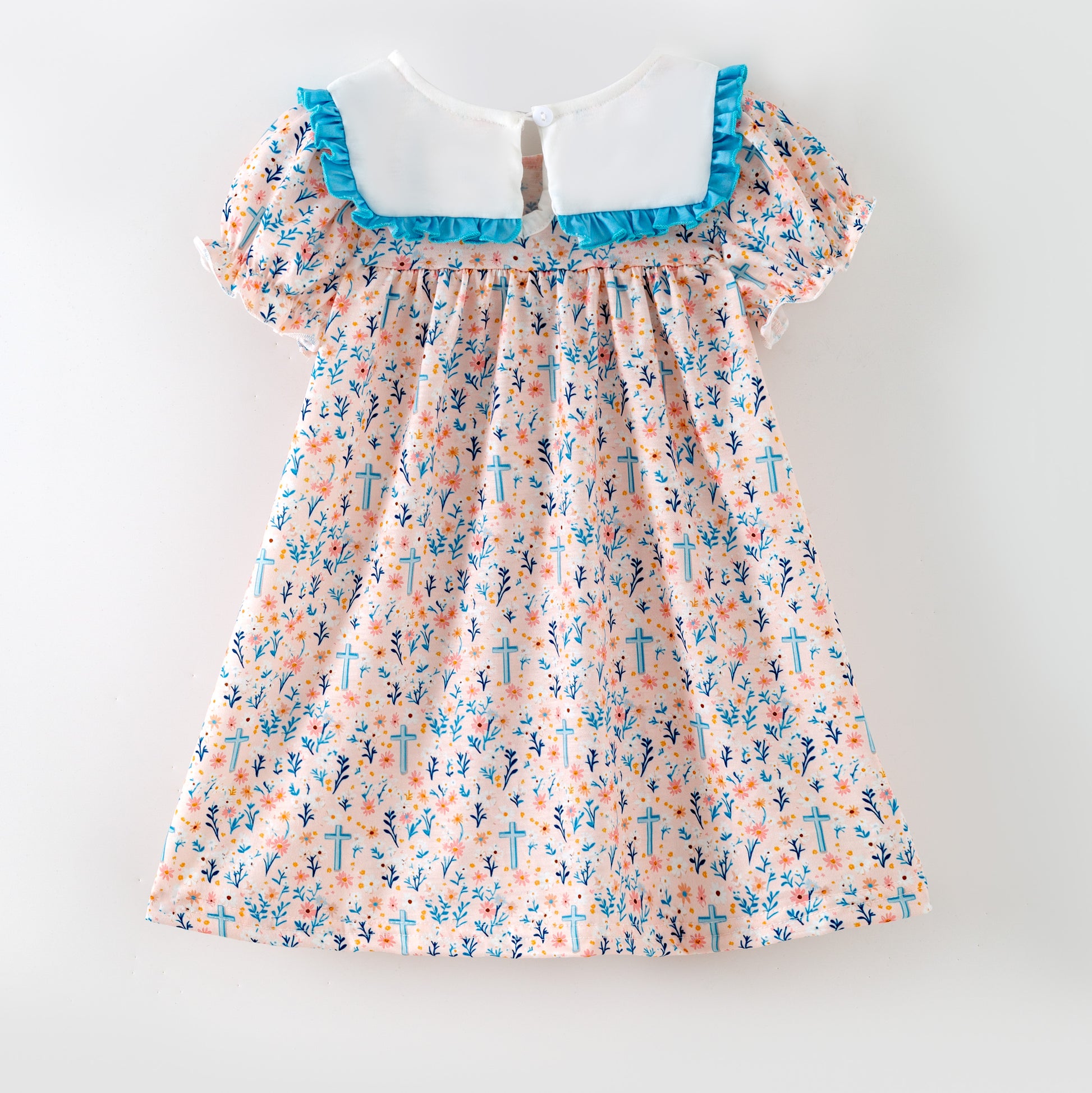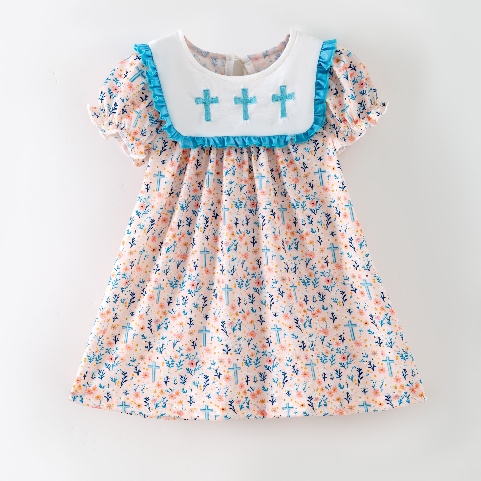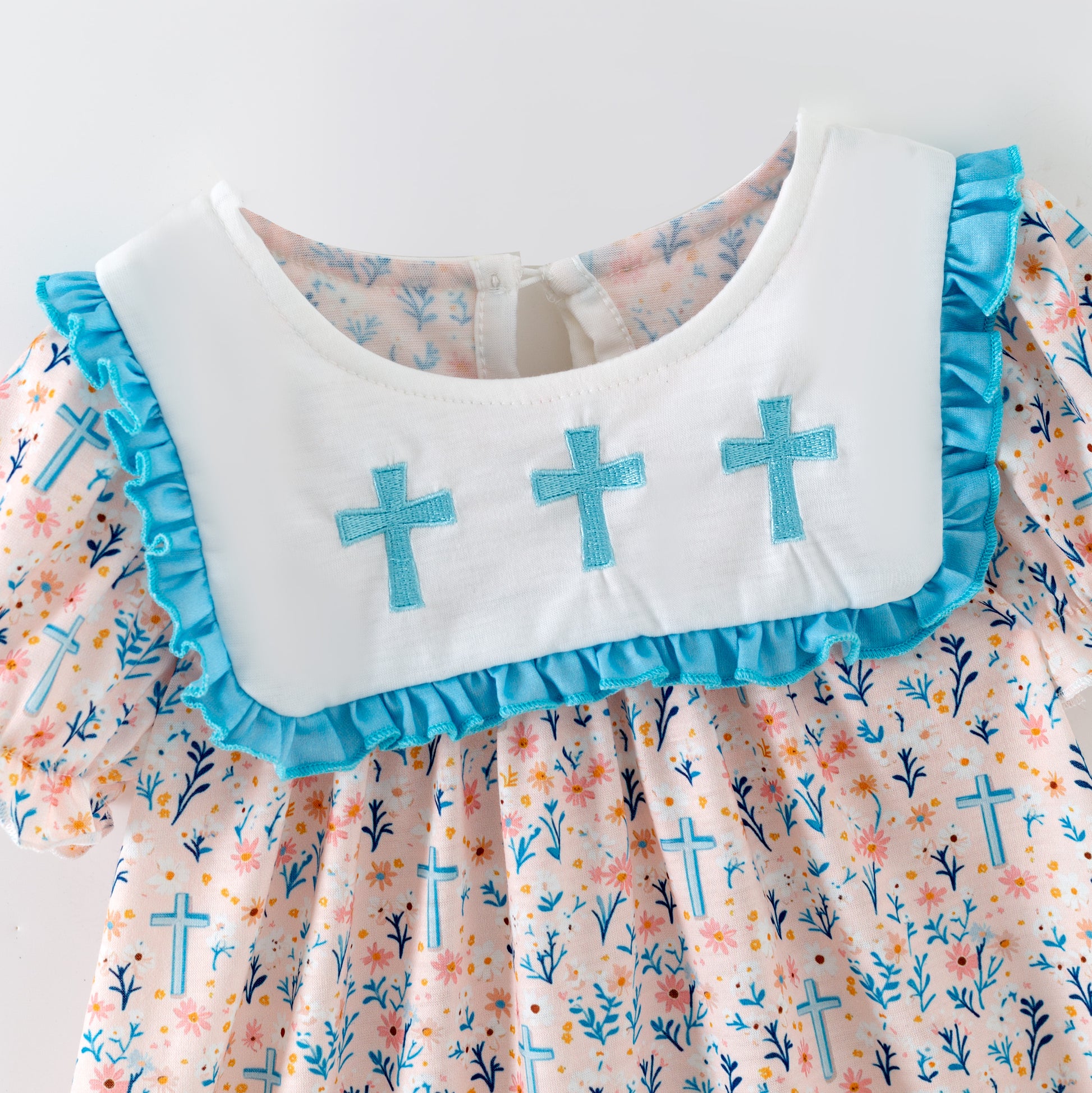 Celebrate sibling style with our Girls Sister Fall Blue Floral Cross Embroidery Sibling Clothes. This playful outfit features charming blue floral patterns paired with delicate cross embroidery, perfect for cozy autumn days and memorable family moments. Soft and comfy, it lets your little one enjoy fall adventures while looking absolutely adorable.