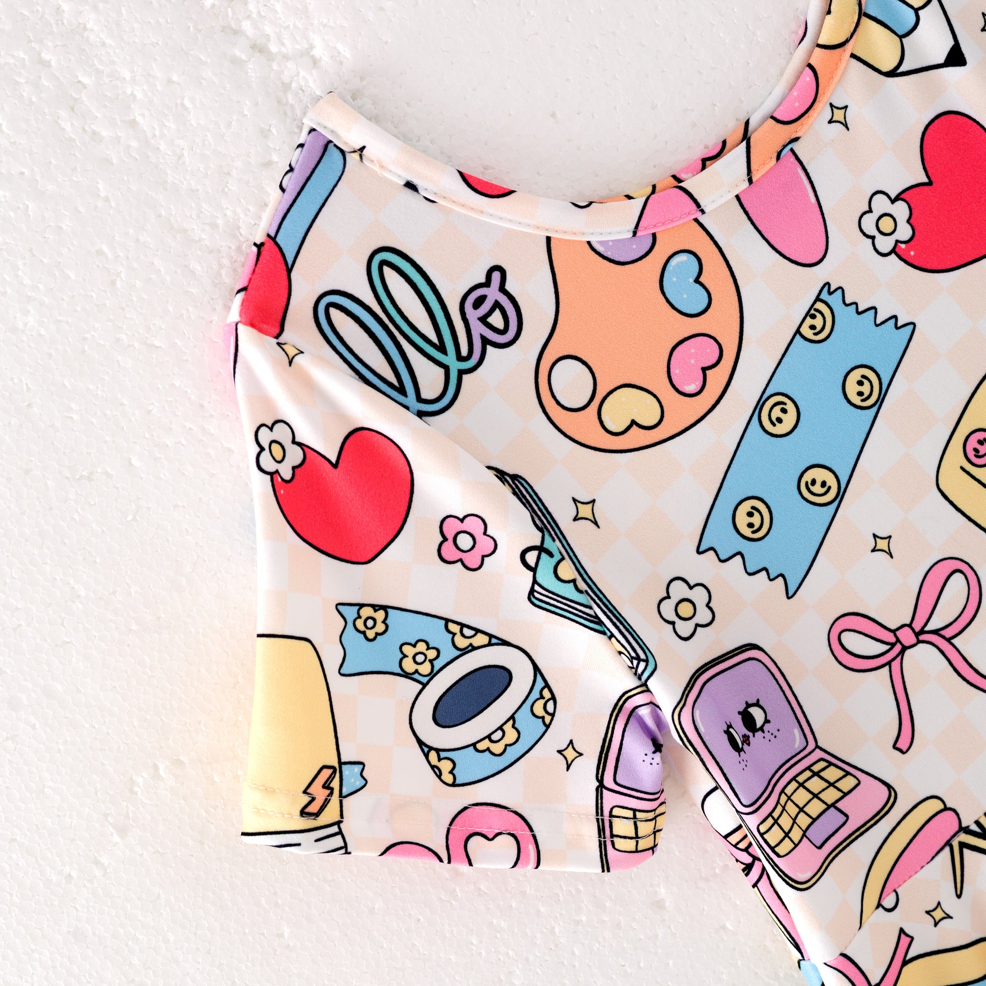 This playful girls' summer dress features a charming back-to-school print and a soft, twirl-worthy fabric that keeps her comfortable and carefree all day. Perfect for sunny days and classroom fun, its lightweight design lets her move and play with ease while looking absolutely adorable.