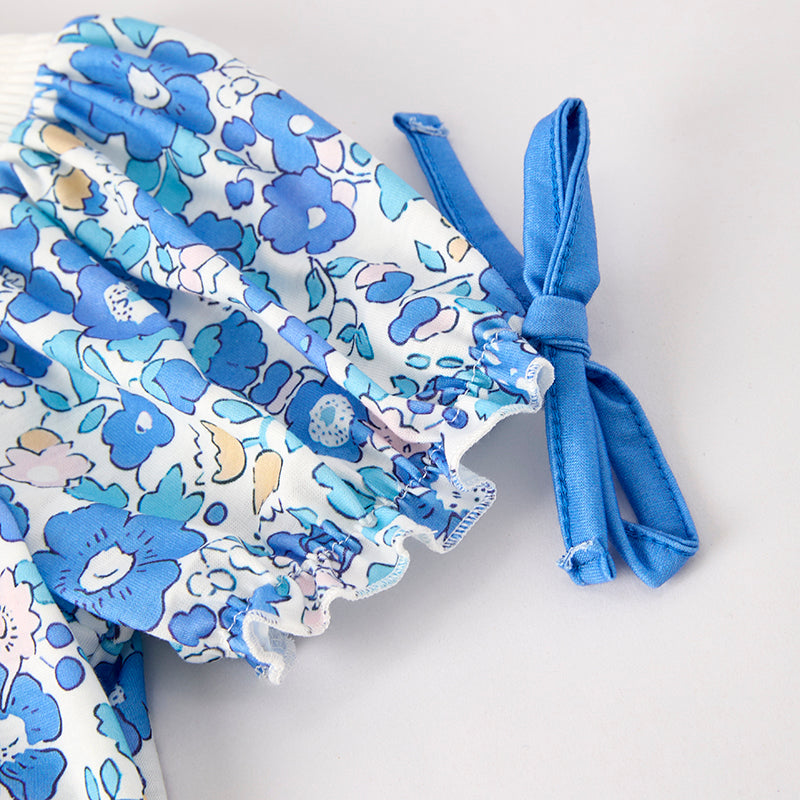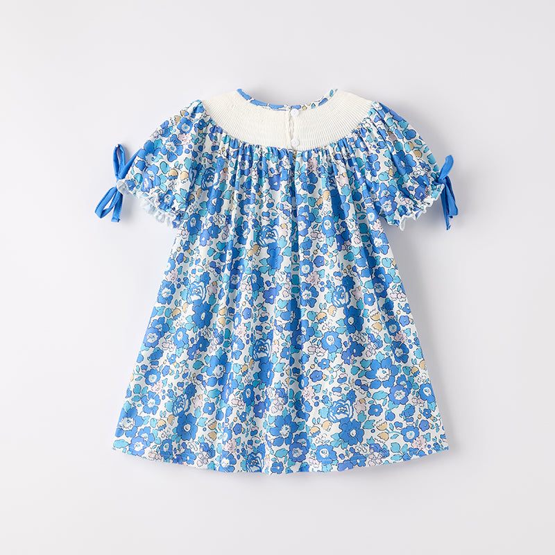 Spread the love with our Girls Summer Blue Floral Smocked Dress, featuring the sweet message 'JESUS LOVES ME'! Perfect for warm summer days and making a faith statement, this playful dress will be her favorite all season long!