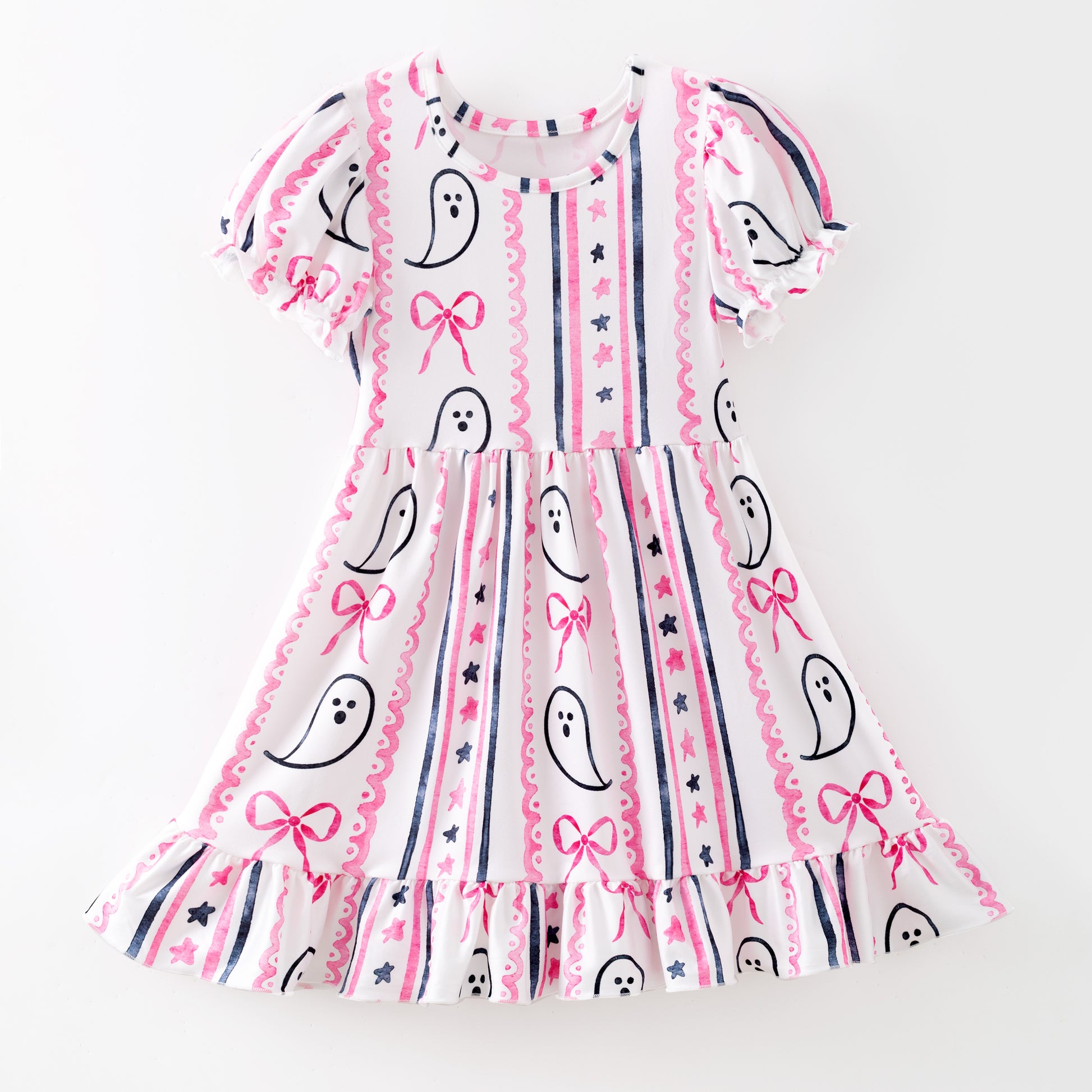 Girls Halloween Pink Ghost Bow Print Milk Silk Soft Dress