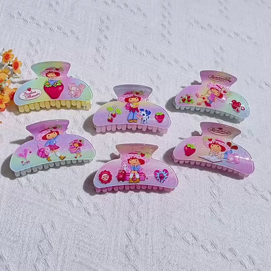 Strawberry Shortcake Acrylic Hair Clip – Cute Cartoon Printed Barrettes for Girls