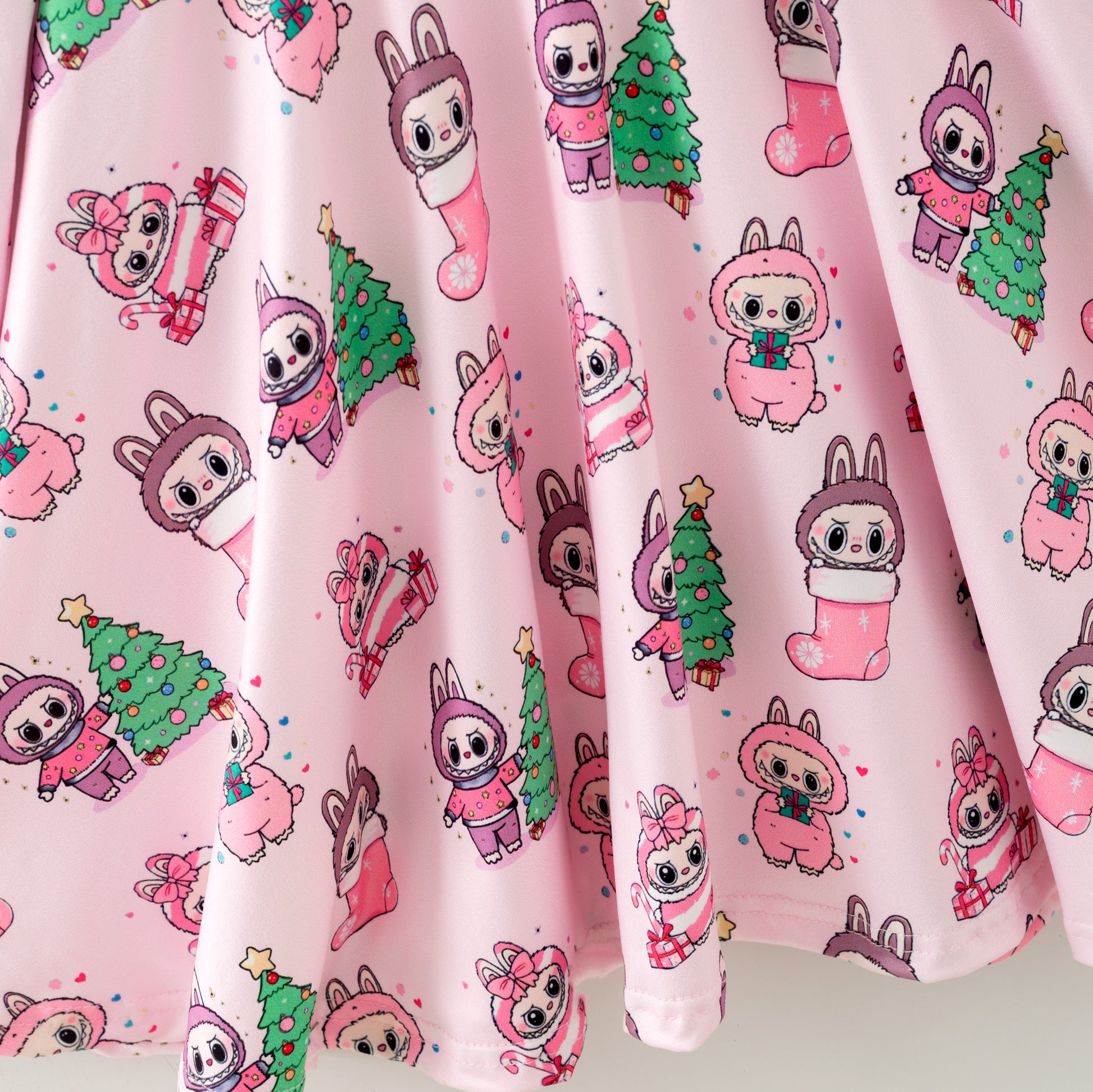 Kids Christams Cartoon Print Matching Pajamas Set & Dress