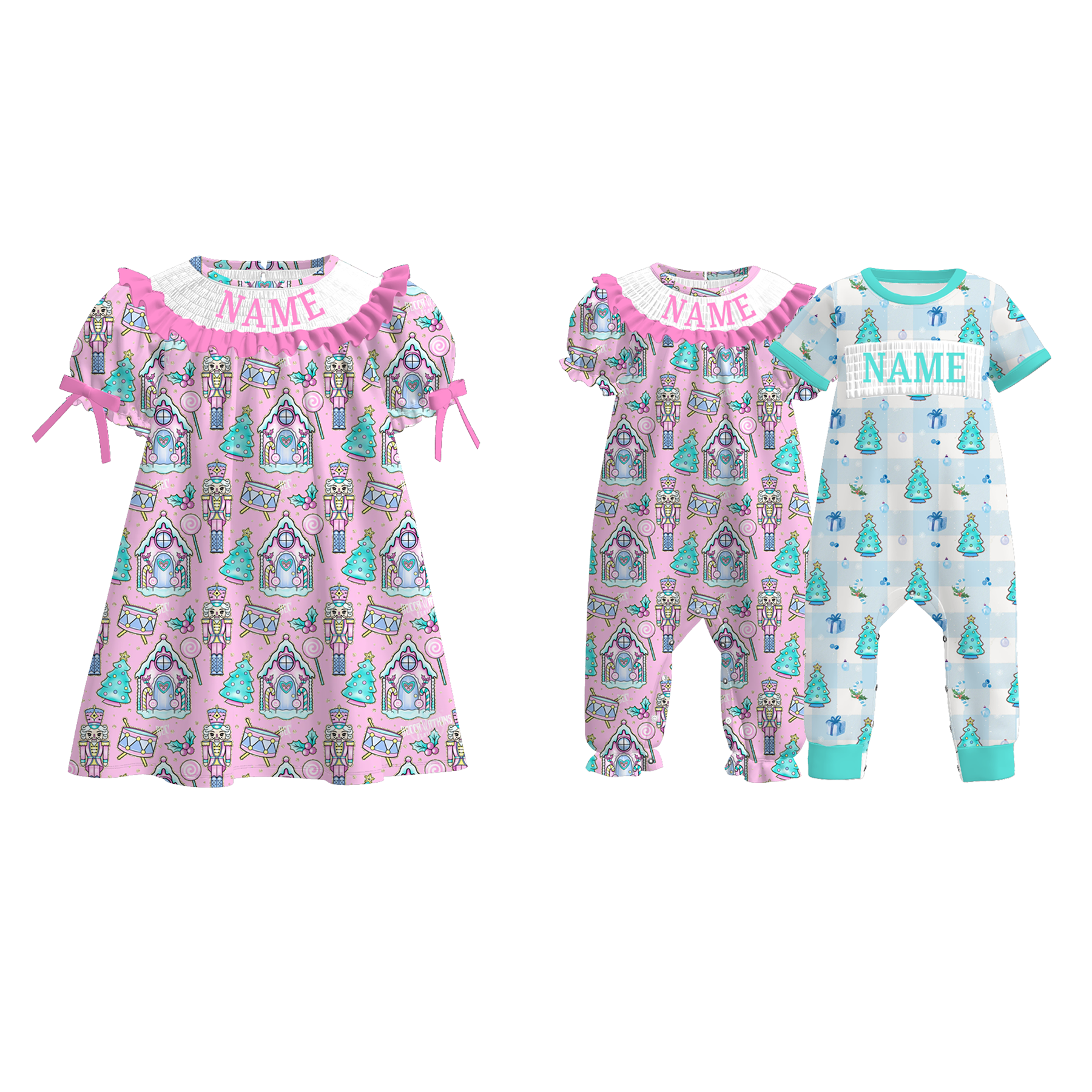 Kids Christmas Nutcracker Smock Embroidery Custom Name Clothes
