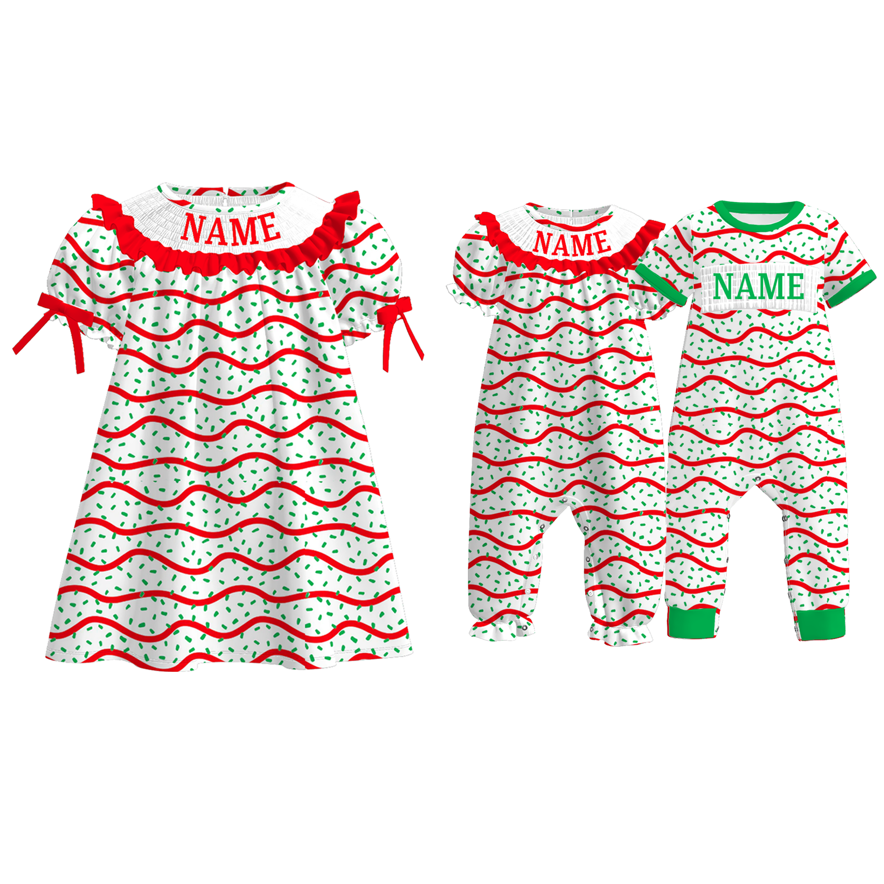 Kids Christmas Stripes Custom Name Red Green Dress & Romper