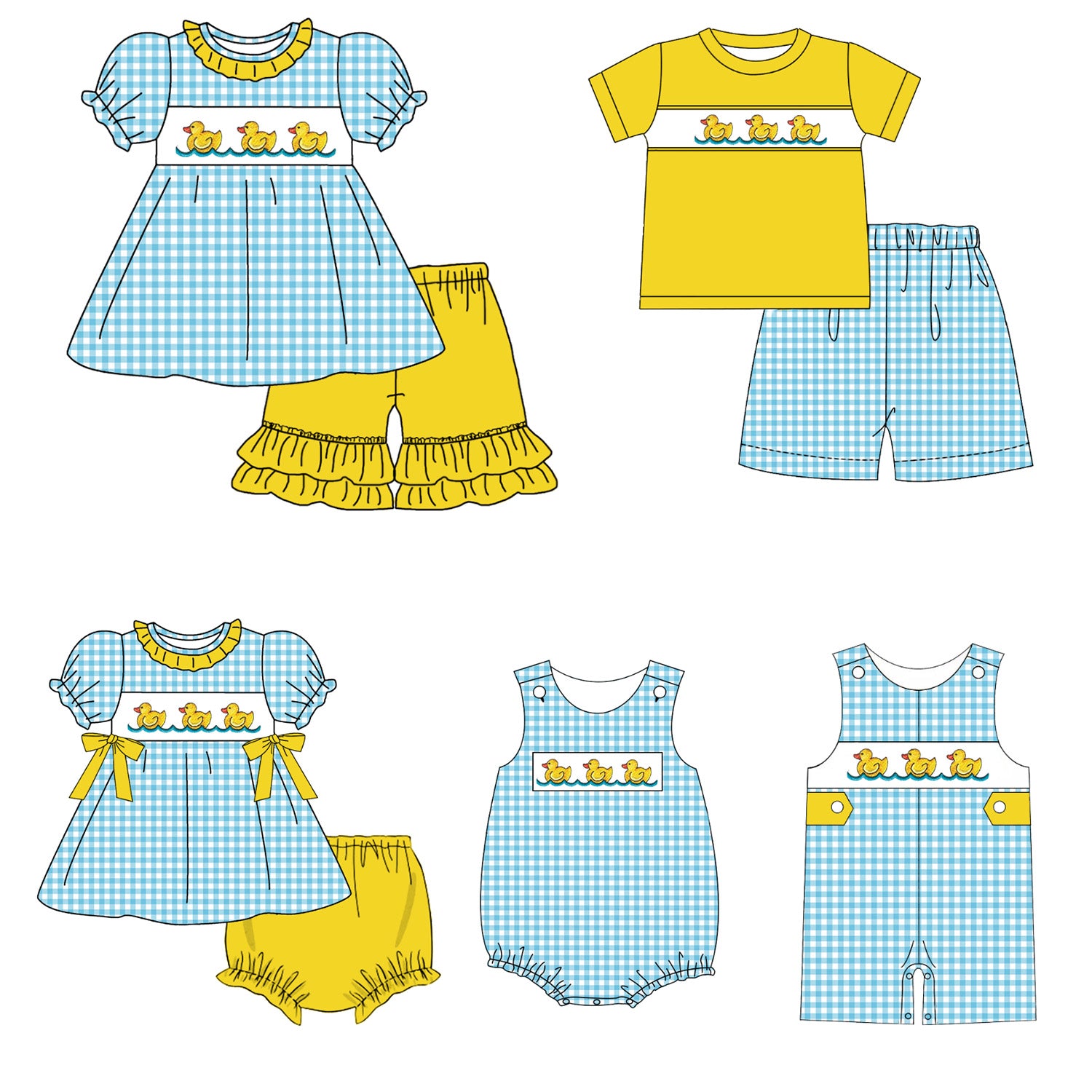 Dive into summer fun with our adorable Rubber Ducks Embroidery Smocked Clothes! These playful sibling outfits feature charming duck embroidery and classic smocking that kids love to wear. Perfect for family photos, beach days, or just splashing around in style. The comfortable fabric keeps little ones cool while looking absolutely duck-tastic all summer long!