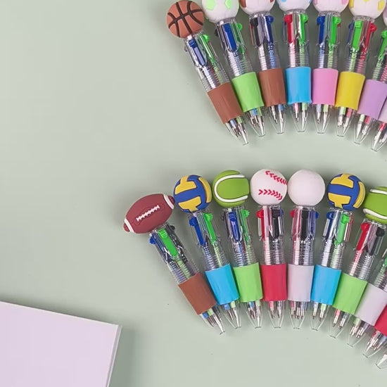 Compact fun meets everyday writing! This mini 4-color ballpoint pen features a sporty ball-shaped top—choose from soccer, basketball, or football designs. Click-retractable mechanism keeps your planner organized and your style on point. Perfect for students, sports fans, and anyone who loves a touch of personality in their stationery. Smooth-writing ink in four vibrant colors makes note-taking a breeze.