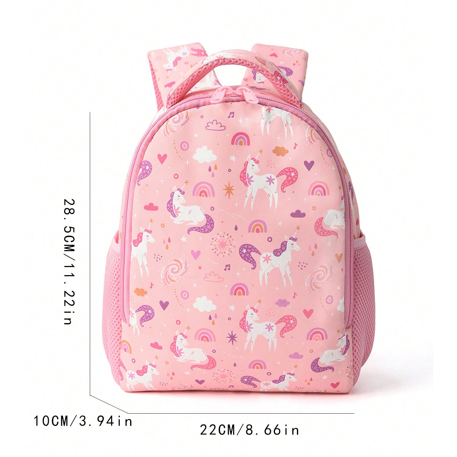 Brighten your child's school days with this charming Rainbow Unicorn Print Kids Backpack. Designed for elementary students, this lightweight bag features a playful unicorn design that kids love. With spacious compartments and durable construction, it's perfect for carrying books, supplies, and lunch. The comfortable straps make it easy for young shoulders to wear all day. Weighing just 1.08 lbs, it won't weigh kids down while they explore and learn.