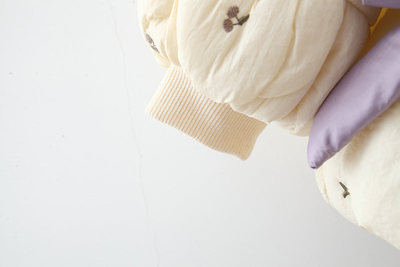 Keep your little one cozy and stylish this winter with our adorable quilted cotton jacket. Featuring charming bow embroidery and a thickened design, this half-round coat delivers warmth without the bulk. The soft fleece lining wraps her in comfort, while the playful details make getting dressed fun. Perfect for chilly days and outdoor adventures.