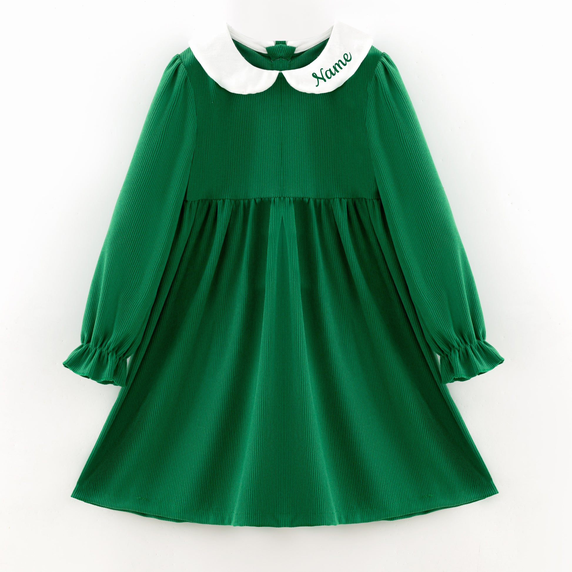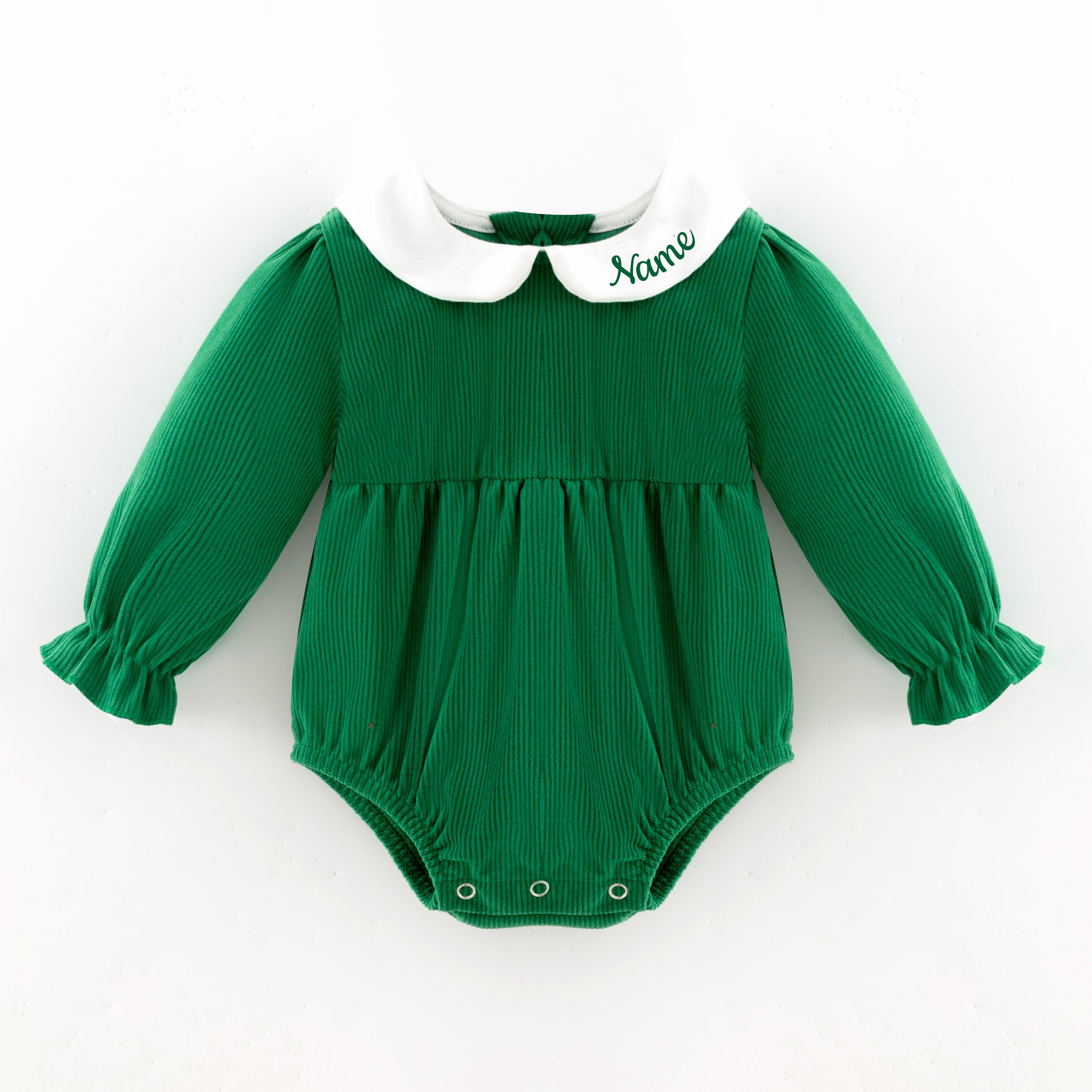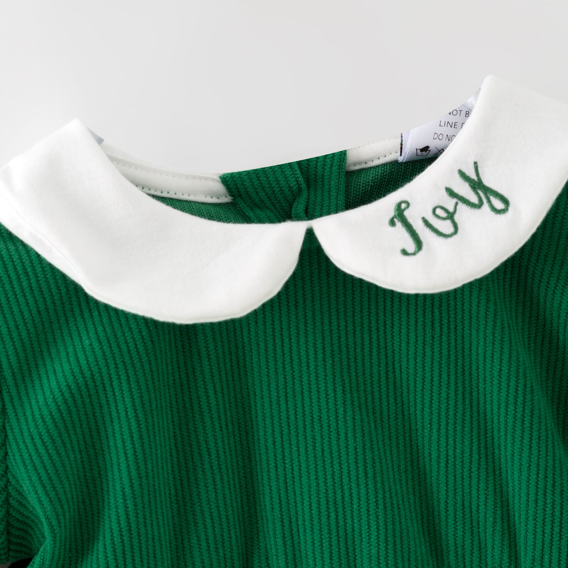 Green Corduroy Personalized Christmas Sibling Clothes – Custom Name Embroidery
