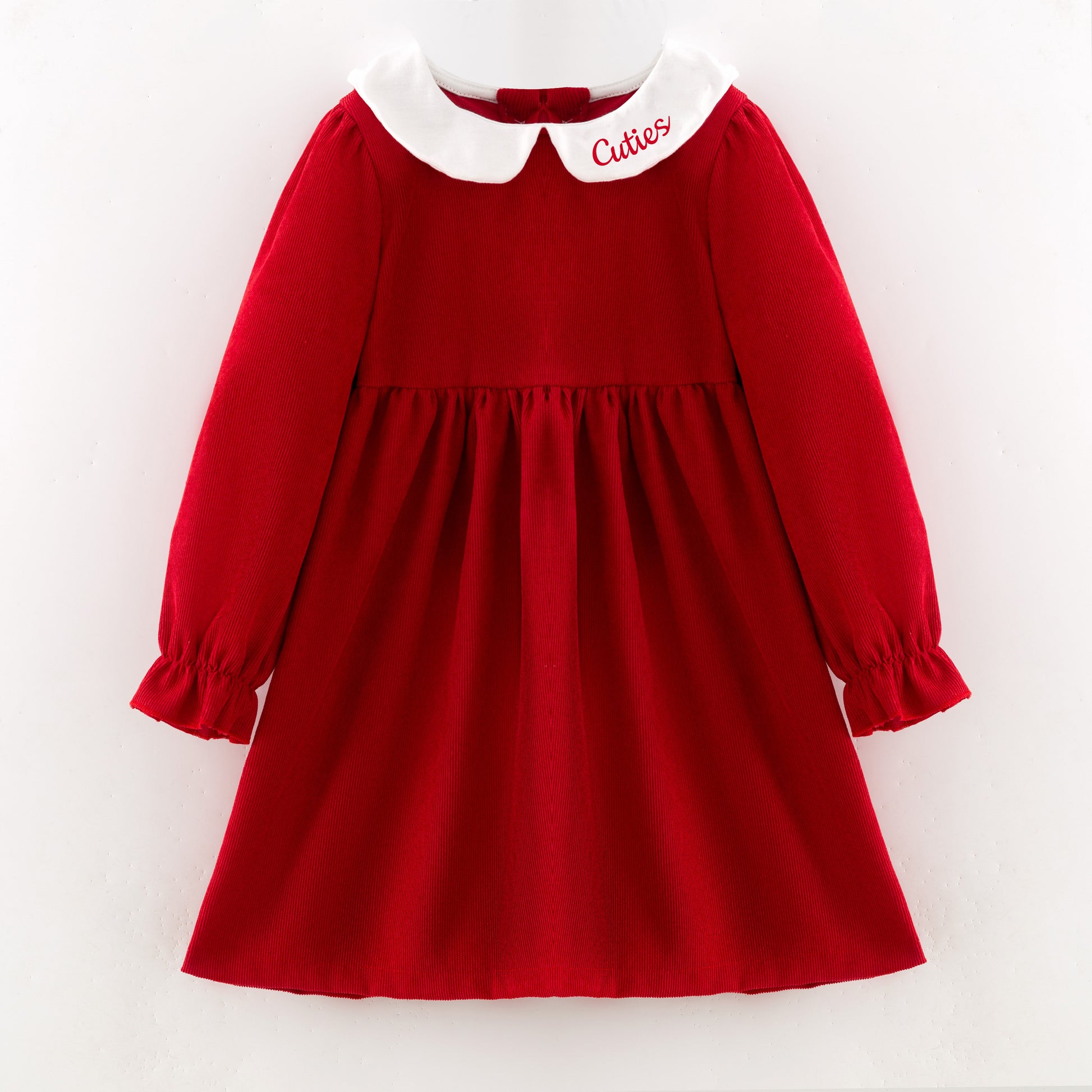 Red Corduroy V-days Sibling Clothes –CUTIES Embroidery