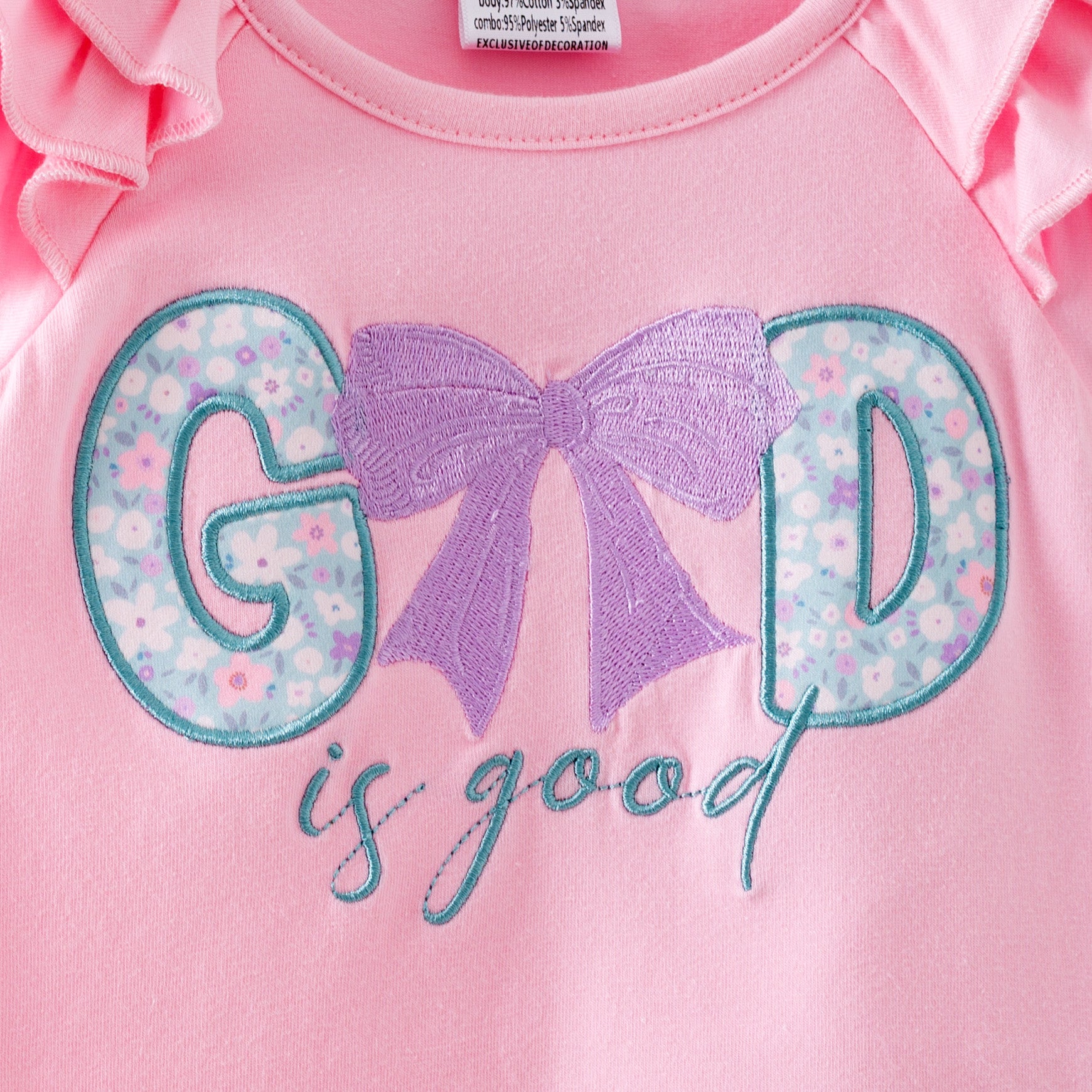 Spring Pink GOD IS GOOD Flower Embroidery Kidswear