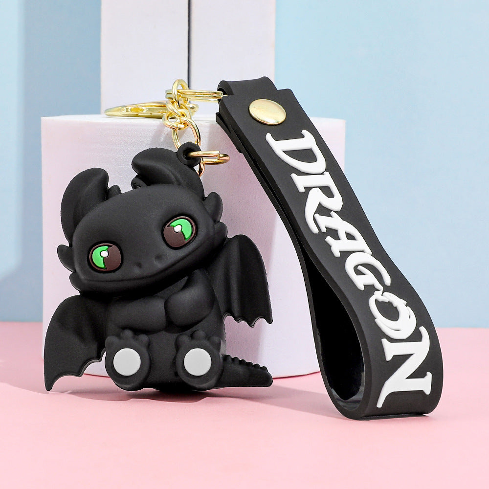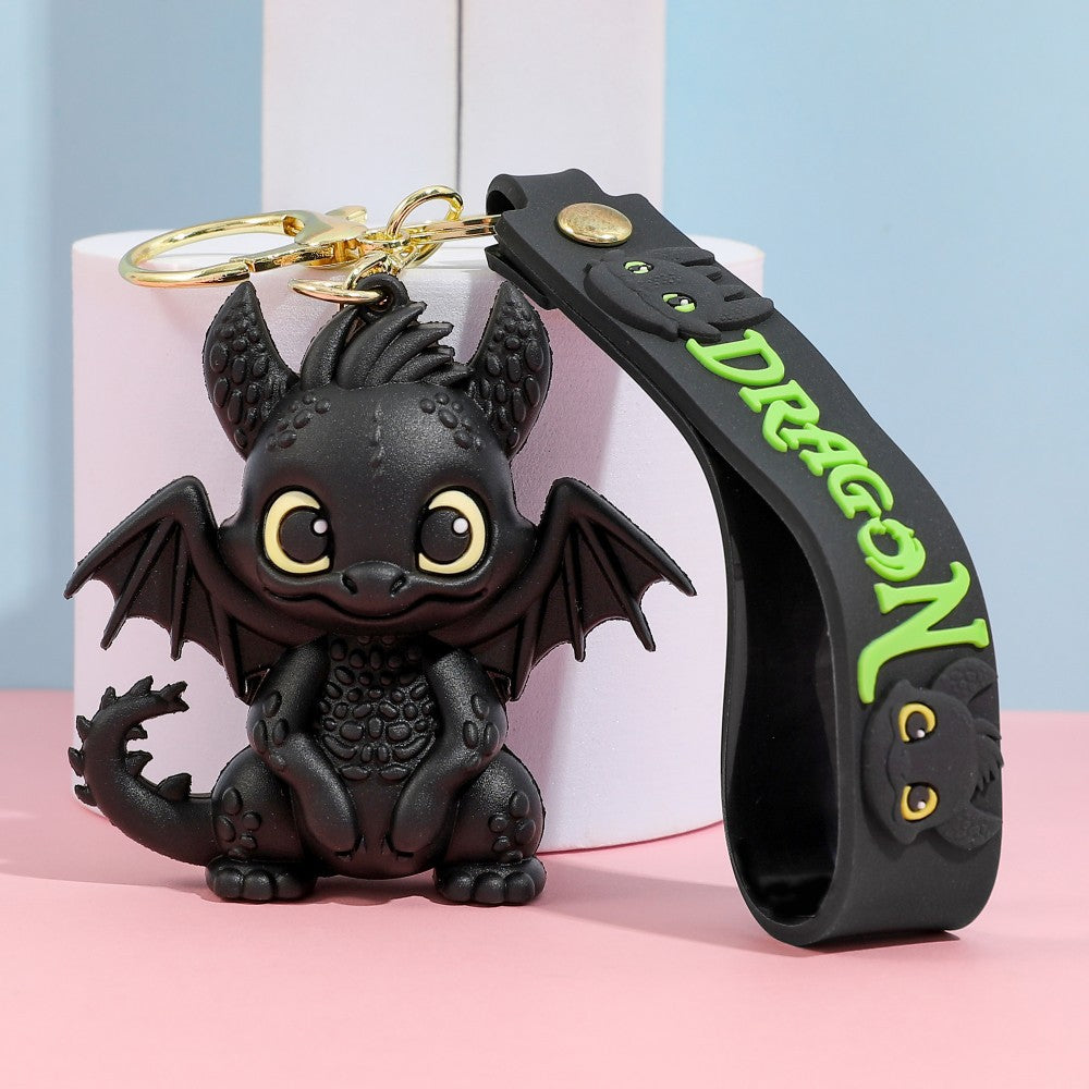 Cartoon Black Dragon PVC Keychain Flying Dragon Bag Charm Soft Rubber Pendant