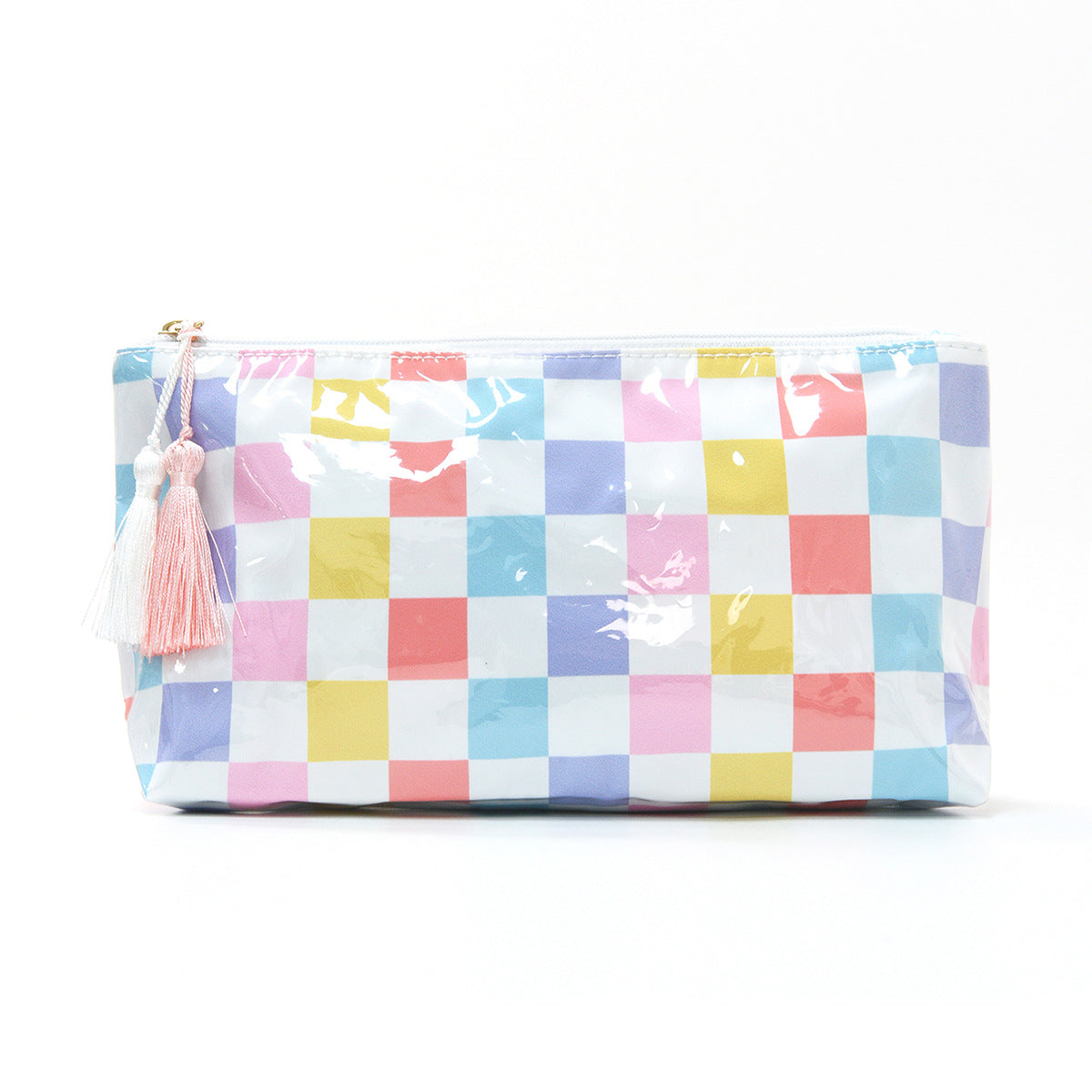 Keep your essentials organized and protected with this waterproof cosmetic bag. Featuring a minimalist striped design, it offers generous capacity for toiletries, makeup, and travel necessities. The durable PVC material resists water and wear, making it ideal for daily use or trips. Compact yet spacious, it fits easily in luggage or everyday bags while keeping contents secure and accessible.