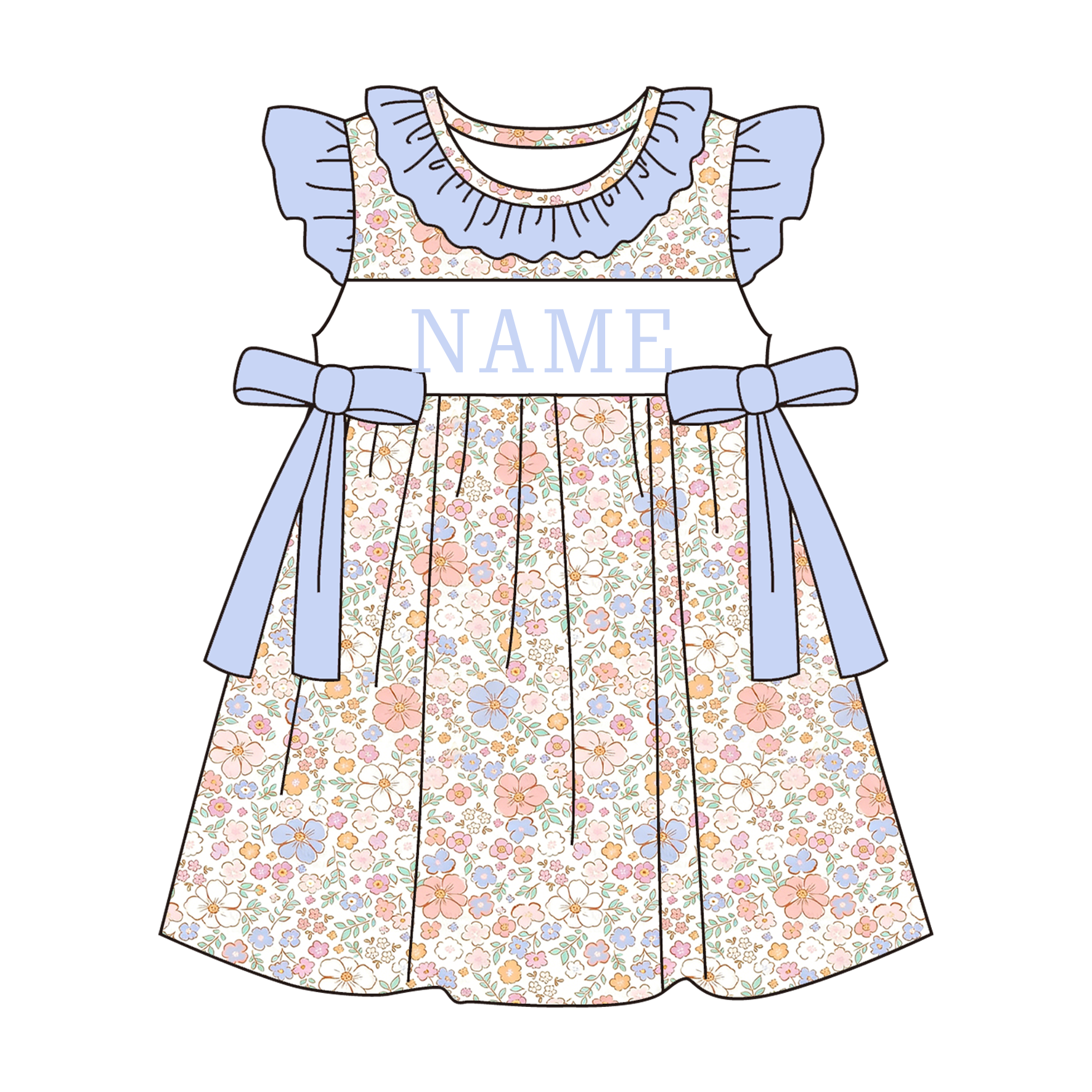 Summer Blue Floral Custom Name Smocked Embroidery Collection