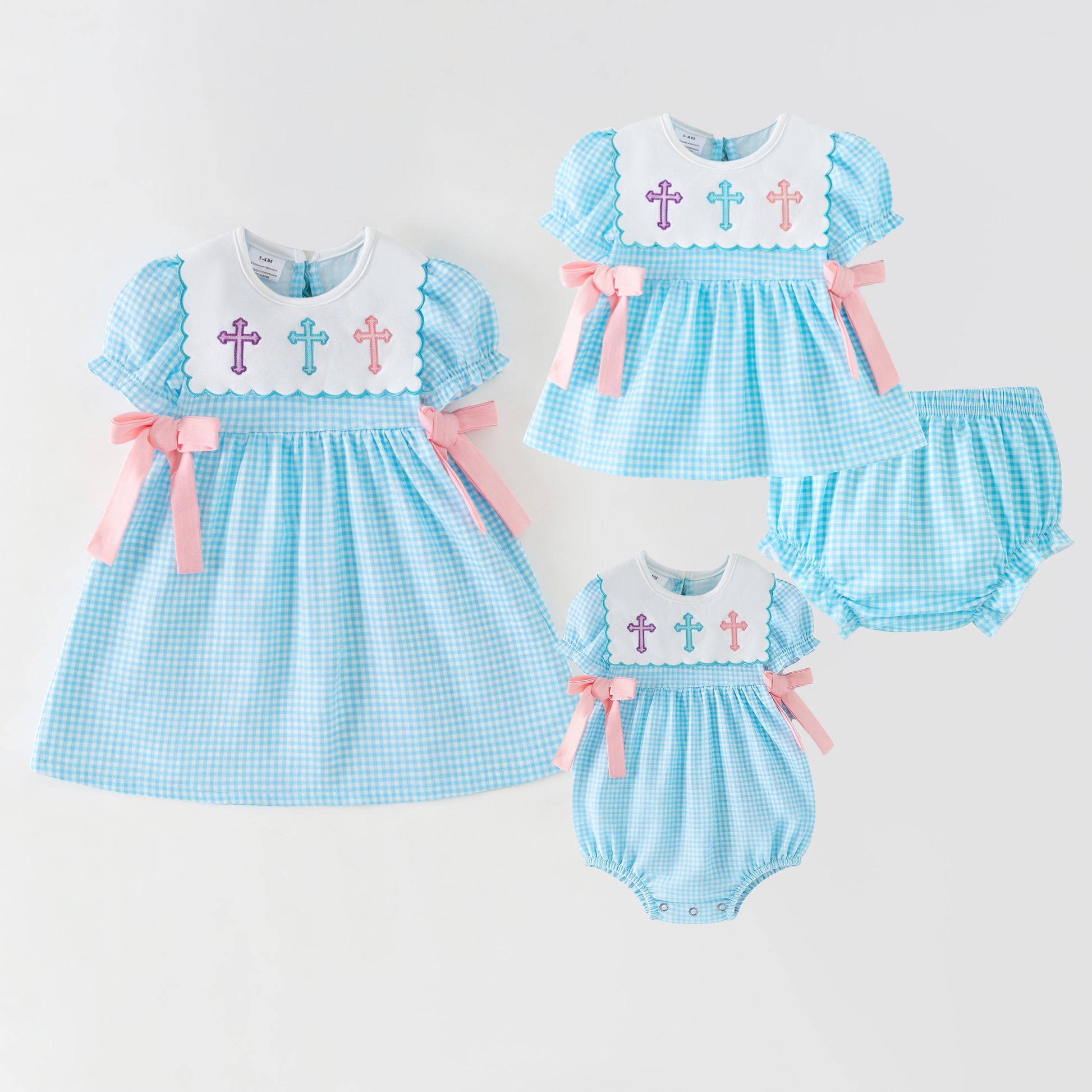 Our Easter Cross Embroidered Kids Collection is here — featuring delicate cross embroidery, soft blue gingham, and charming bow accents for a timeless spring look.