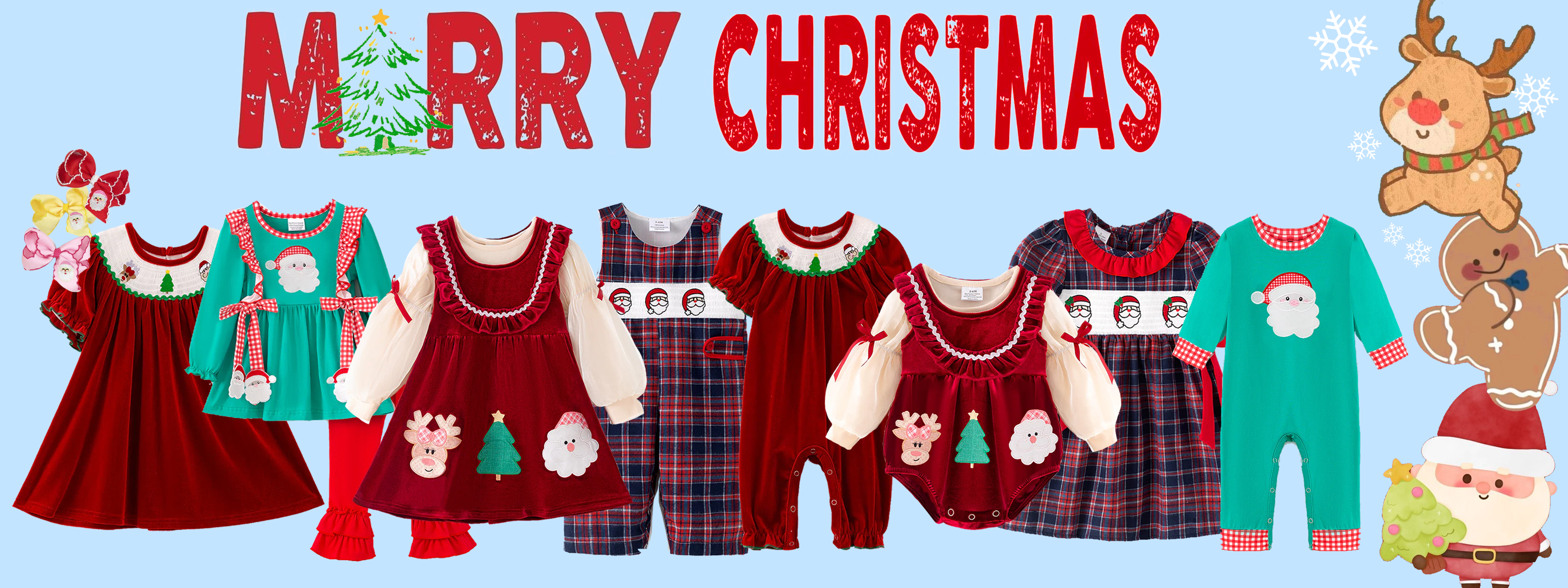 Kids Christmas Pink Blue Smocked Collection Custom Name Holiday Outfits